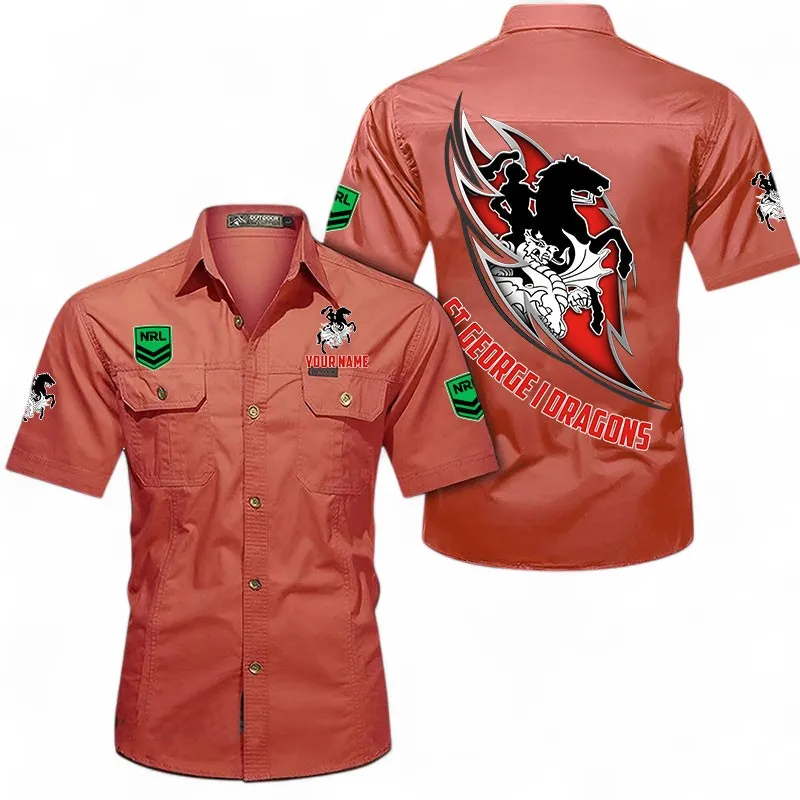 St George Illawarra Dragons Fans Gift Short Sleeved Shirt, All Over Print Short Sleeved Shirt For Sport Fan, Custom Name NRL173071625011-Red