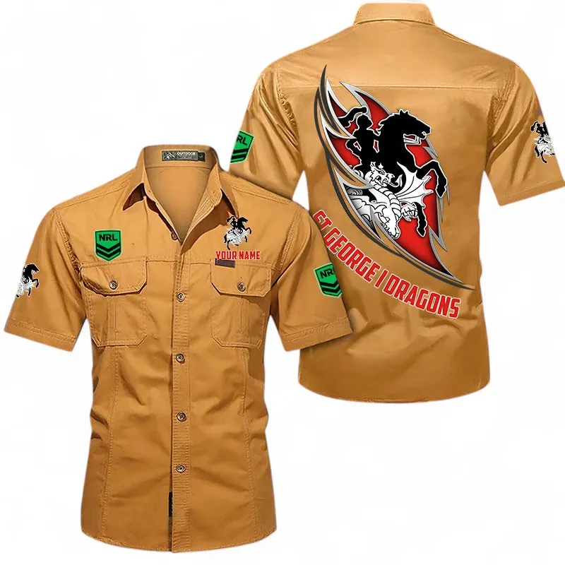 St George Illawarra Dragons Fans Gift Short Sleeved Shirt, All Over Print Short Sleeved Shirt For Sport Fan, Custom Name NRL173071625011-Khaki
