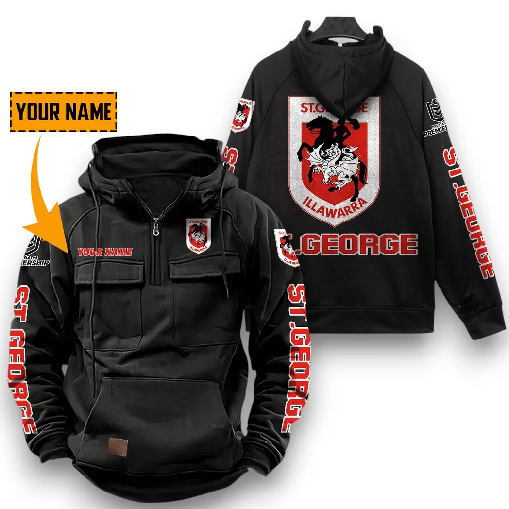 St George Illawarra Dragons NRL Tactical Quarter Zip Hoodie NRL29012325557, Gift For Fan St George Illawarra Dragons - Black