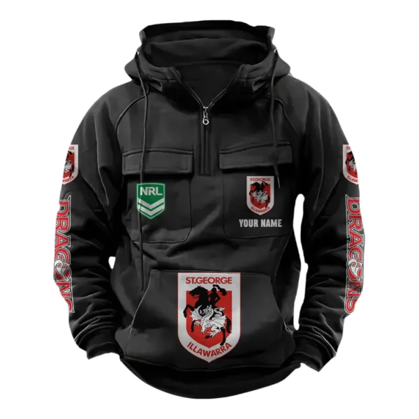 St George Illawarra Dragons NRL Tactical Quarter Zip Hoodie NRL43012125567, Gift For Fan St George Illawarra Dragons - Black