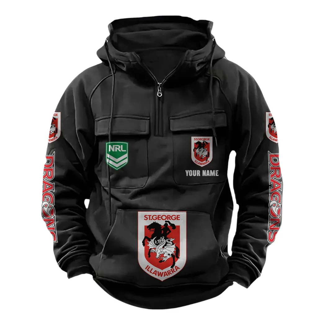 St George Illawarra Dragons NRL Tactical Quarter Zip Hoodie NRL43012125567, Gift For Fan St George Illawarra Dragons – Black