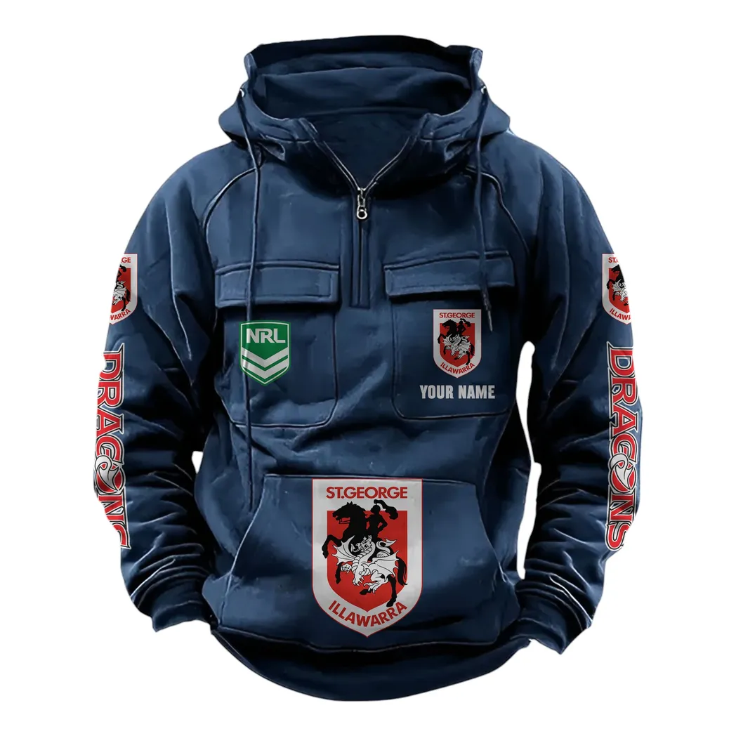 St George Illawarra Dragons NRL Tactical Quarter Zip Hoodie NRL43012125567, Gift For Fan St George Illawarra Dragons – Dark Blue