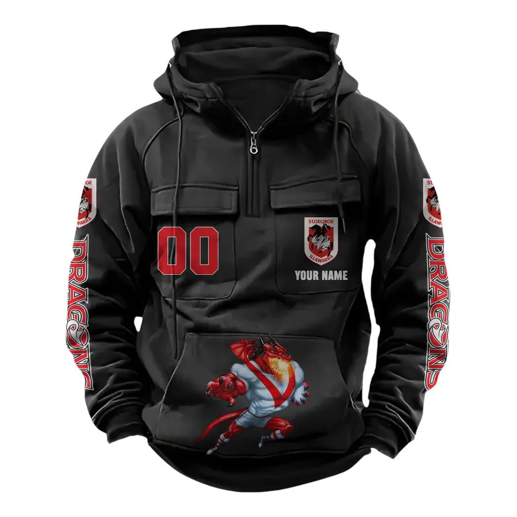 St George Illawarra Dragons NRL Tactical Quarter Zip Hoodie NRL43012125604, Gift For Fan St George Illawarra Dragons - Black