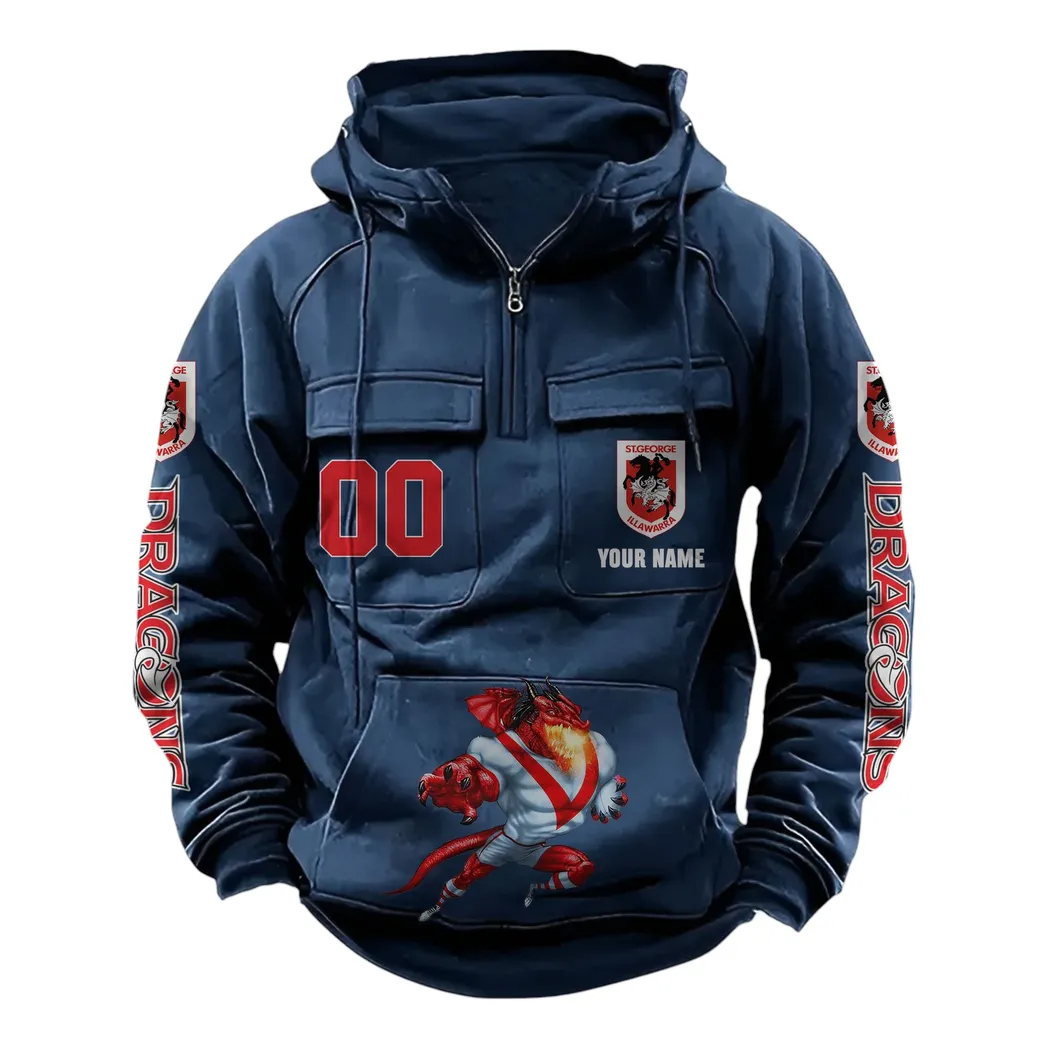 St George Illawarra Dragons NRL Tactical Quarter Zip Hoodie NRL43012125604, Gift For Fan St George Illawarra Dragons - Black