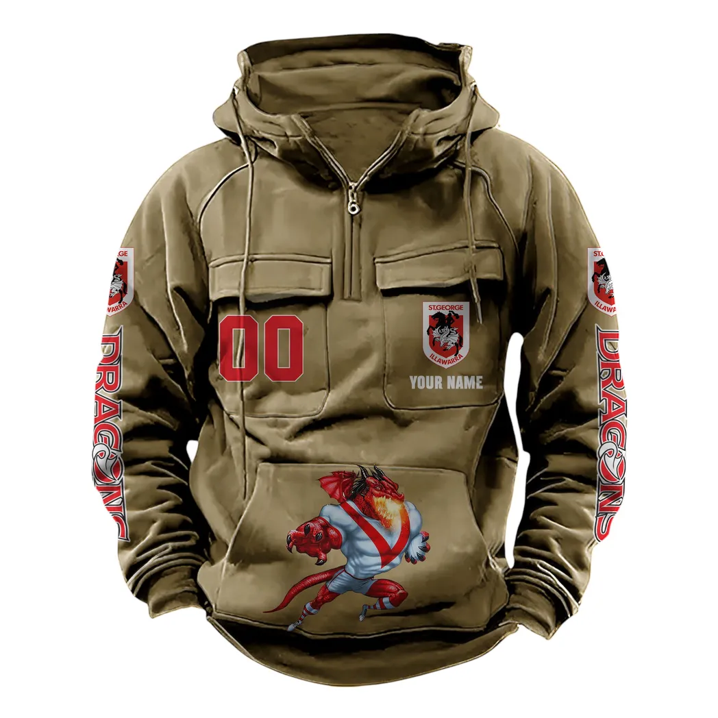 St George Illawarra Dragons NRL Tactical Quarter Zip Hoodie NRL43012125604, Gift For Fan St George Illawarra Dragons - Khaki