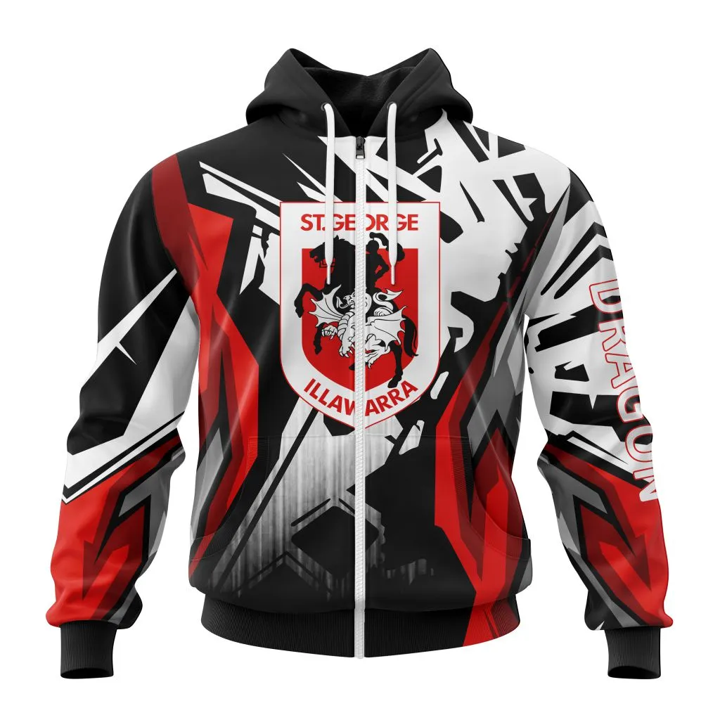 St. George Illawarra Dragons NRL Zipper Hoodie 3D Print, Personalize Name and Number NRL108061625788