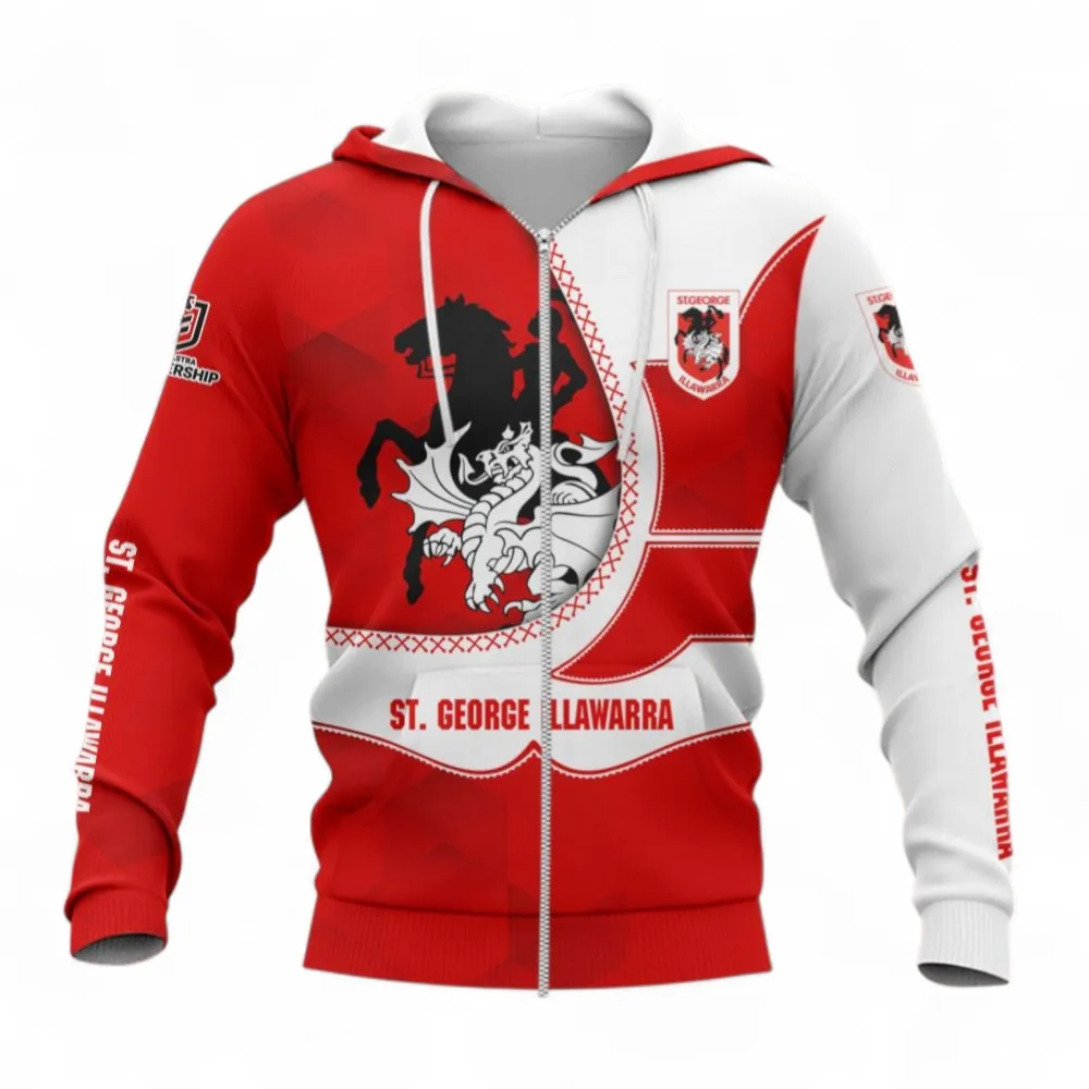 St. George Illawarra Dragons Fan Hoodie Full-Zip Warmth with Game-Day Energy