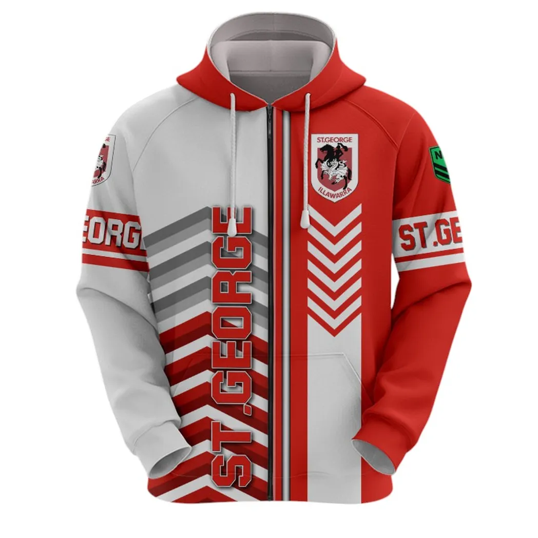 St George Illawarra Dragons Zipper Hoodie, All Over Print Zipper Hoodie St George Illawarra Dragons DNRL1246282038