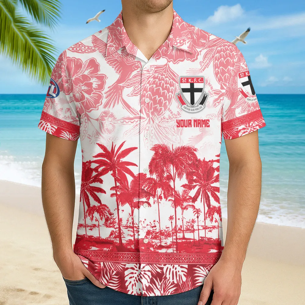 St Kilda Fans Gift Hawaiian Shirt, All Over Print Hawaiian Shirt For Sport Fan, Custom Name AFL157071425133