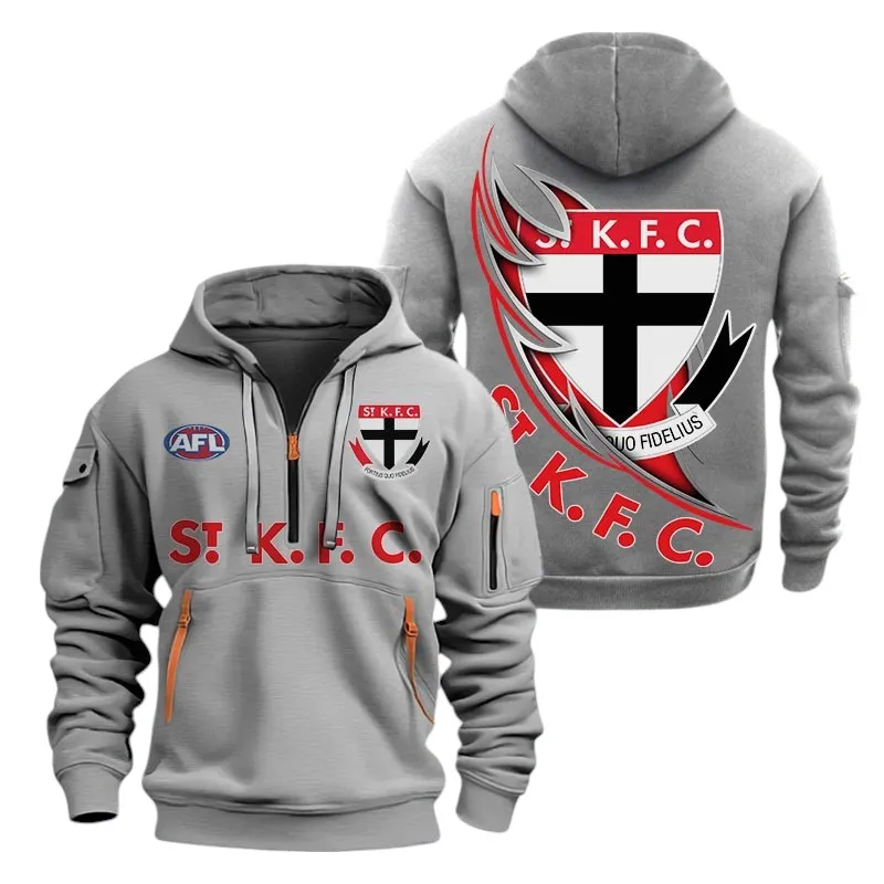St Kilda Fans Gift Hoodie Half Zipper, All Over Print Hoodie Half Zipper For Sport Fan AFL142071225137 - Grey