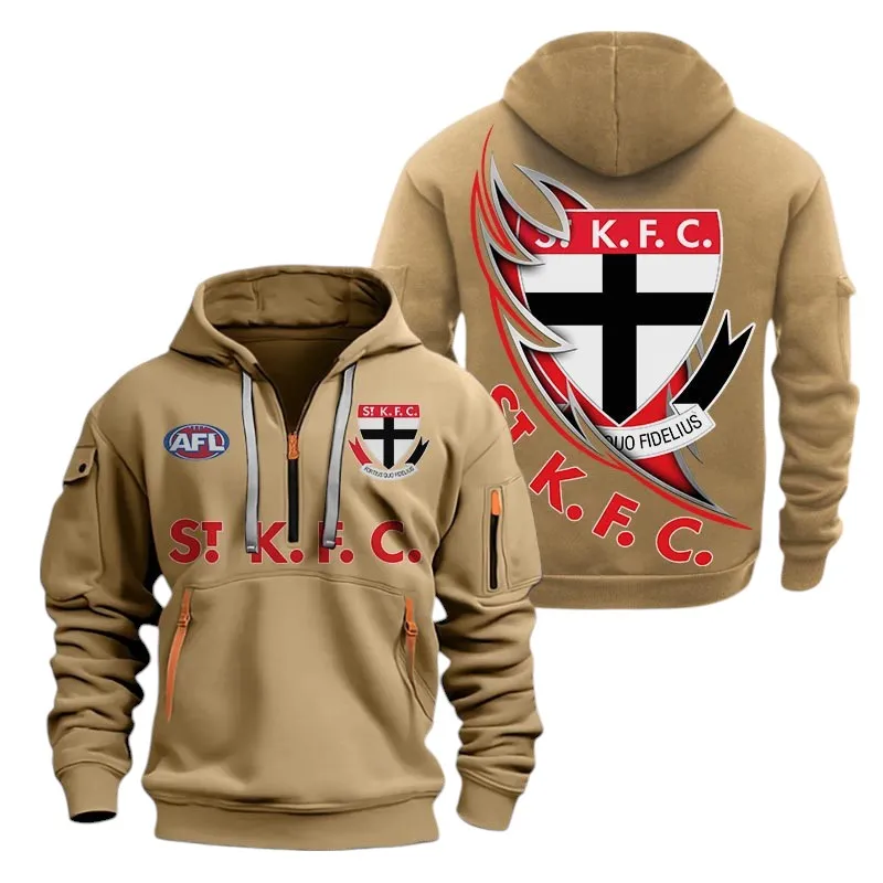 St Kilda Fans Gift Hoodie Half Zipper, All Over Print Hoodie Half Zipper For Sport Fan AFL142071225137 - Khaki