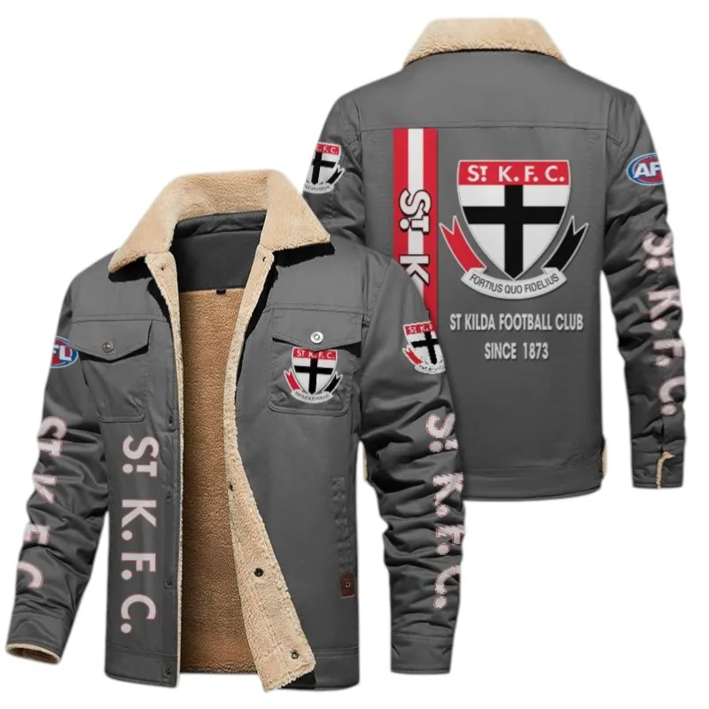 St Kilda Fans Gift Jacket Fur Collar Fleece, All Over Print Collar Fleece For Sport Fan AFL163080225135 – Gray
