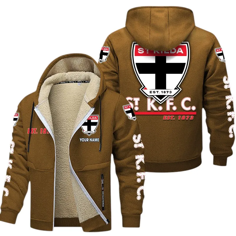 St Kilda Fans Gift Lamb Fleece Thick Coat, All Over Print Thick Coat For Sport Fan, Custom Name AFL144071725136 – Brown