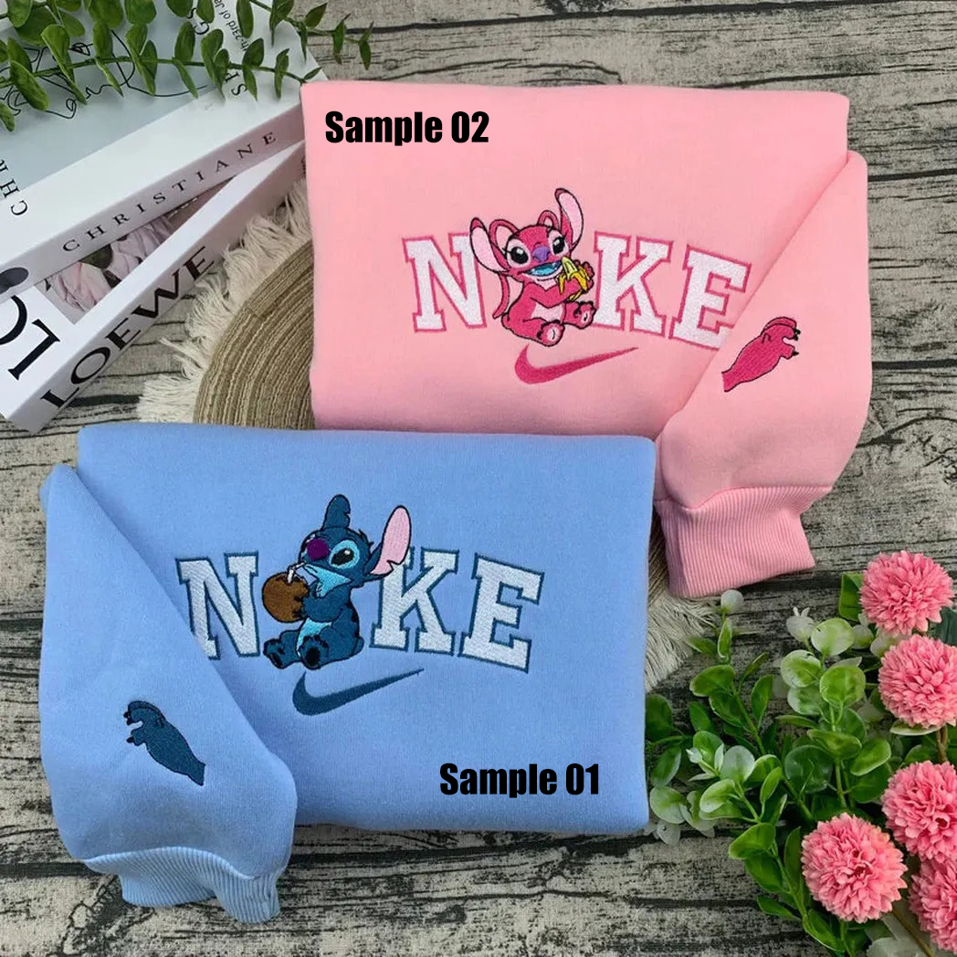 Stitch And Angel Cartoon Embroidered Sweatshirt Fashion Style For Couple