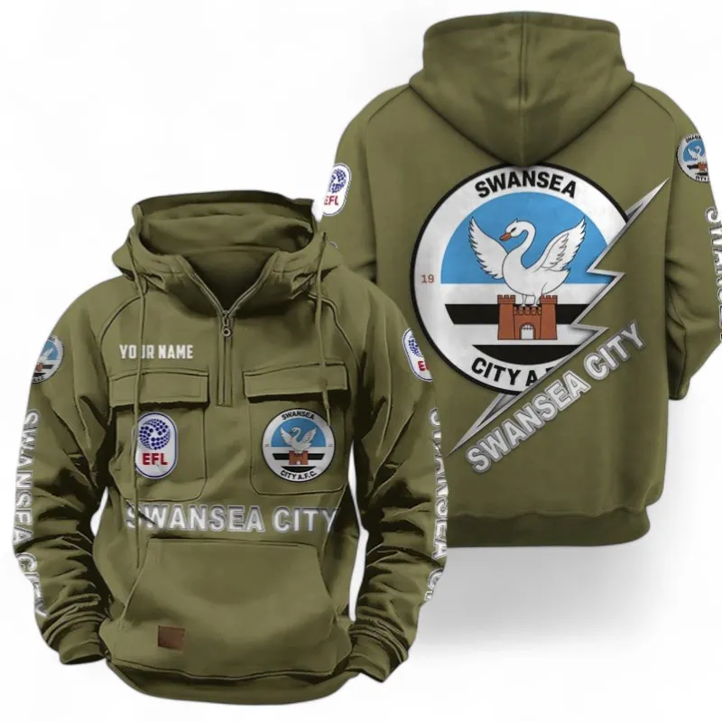 Swansea City Fans Gift Tactical Quarter Zip Hoodie, All Over Print Tactical Quarter Zip Hoodie For Sport Fan, Custom Name EPL113073025474-Army Green