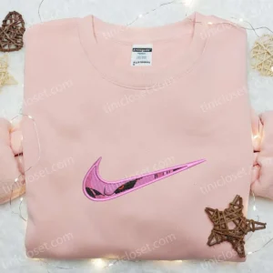 Swoosh x Majin Buu Embroidered Shirt, Dragon Ball embroidered Hoodie, Nike Anime Embroidered Sweatshirt