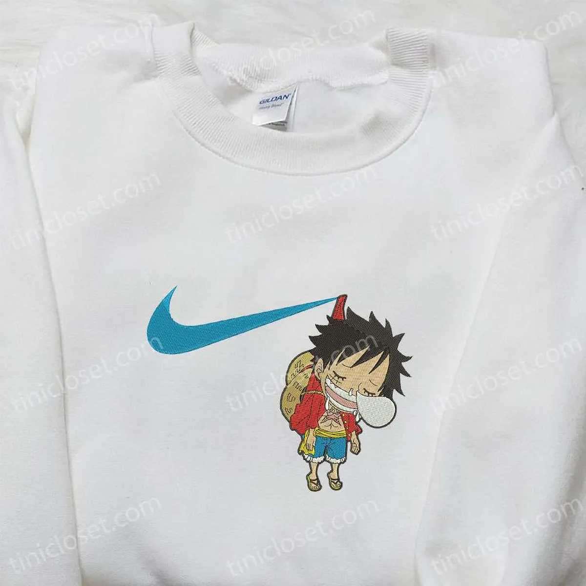 Swoosh x Monkey D. Luffy Kid Sleeping Embroidered Sweatshirt, One Piece Embroidered Shirt, Best Gift for Family
