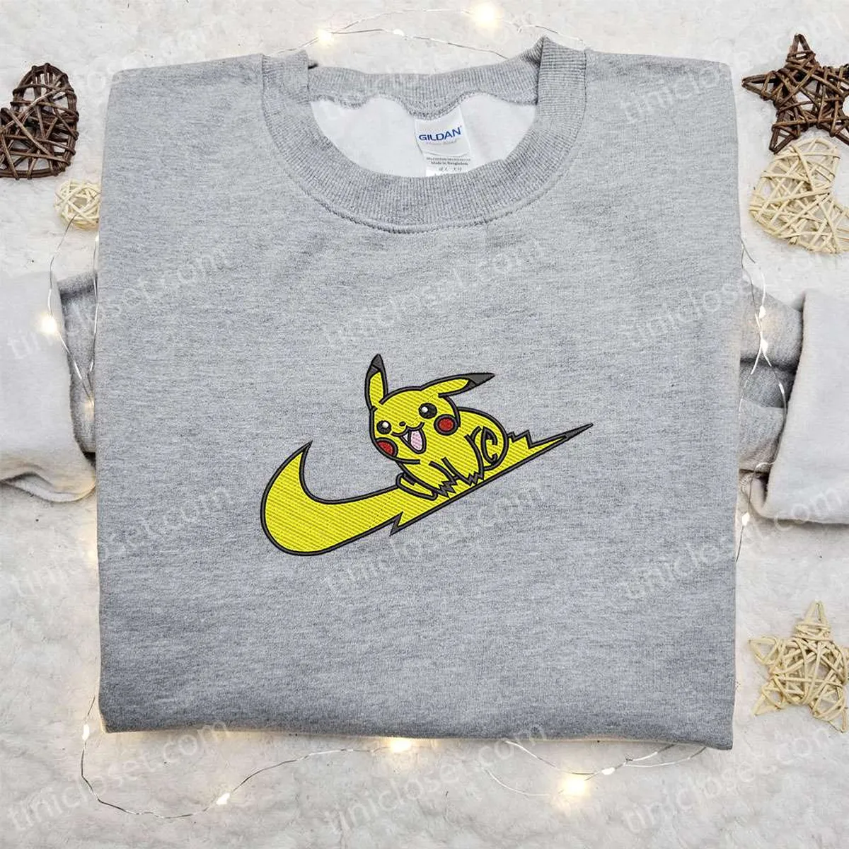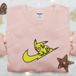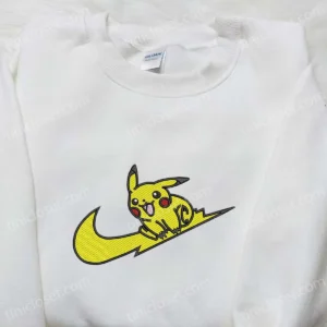 Swoosh x Pikachu Anime Embroidered Shirt, Pokemon Embroidered T-shirt, Best Gift Ideas for Family