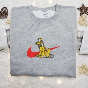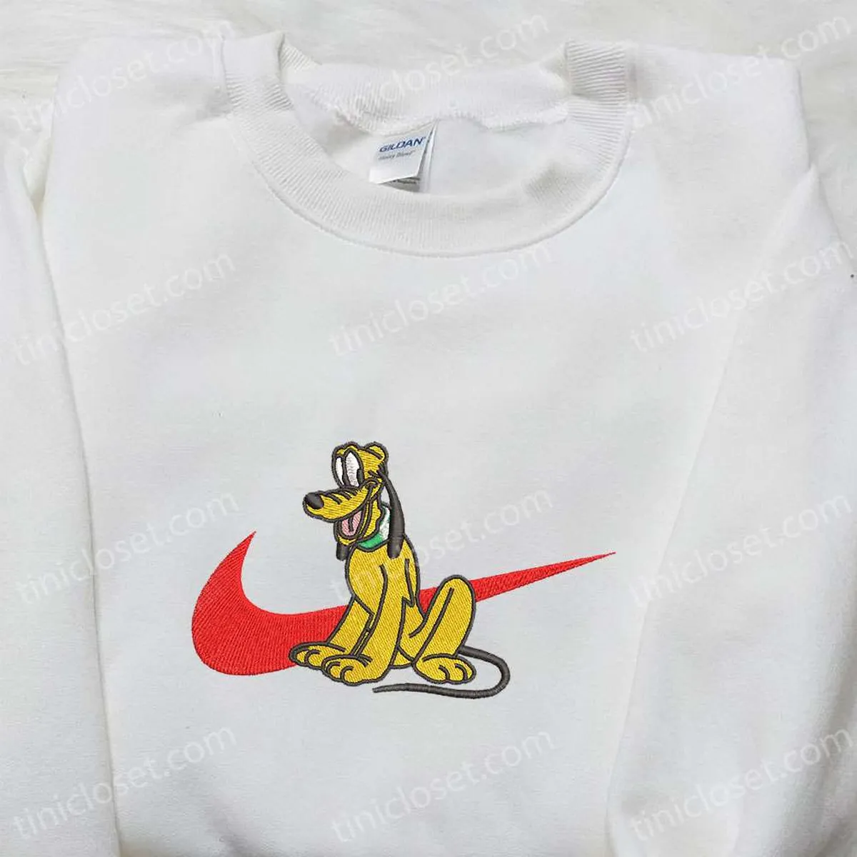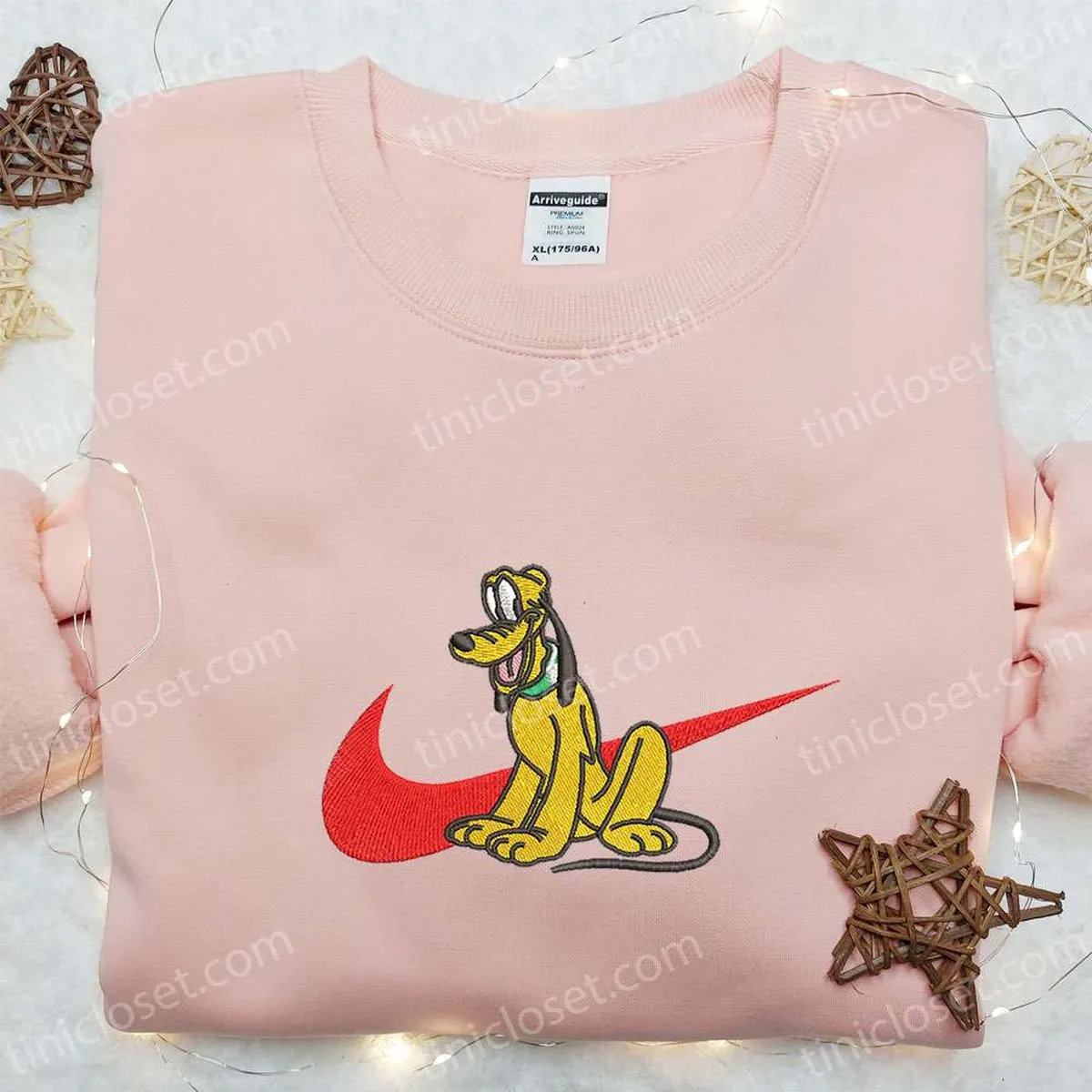 Swoosh x Pluto Embroidered Shirt, Disney Characters Embroidered Shirt, Nike Inspired Embroidered T-shirt