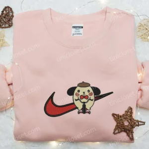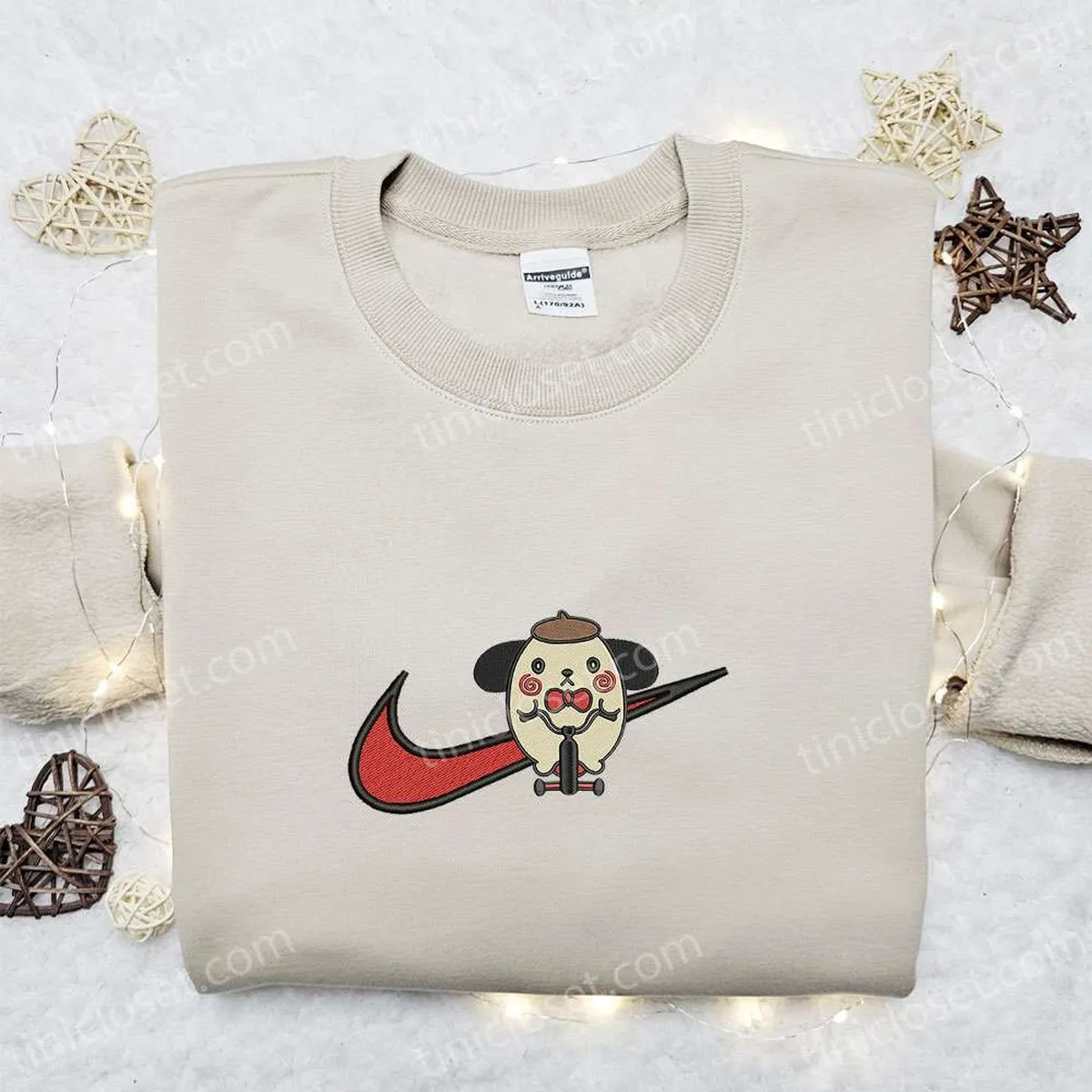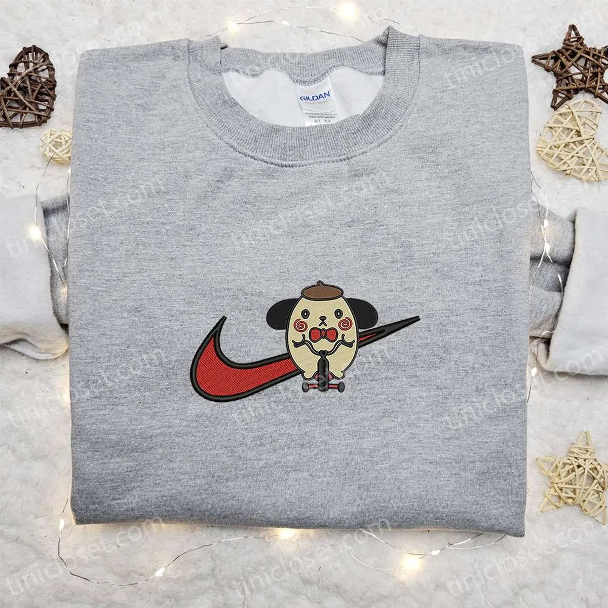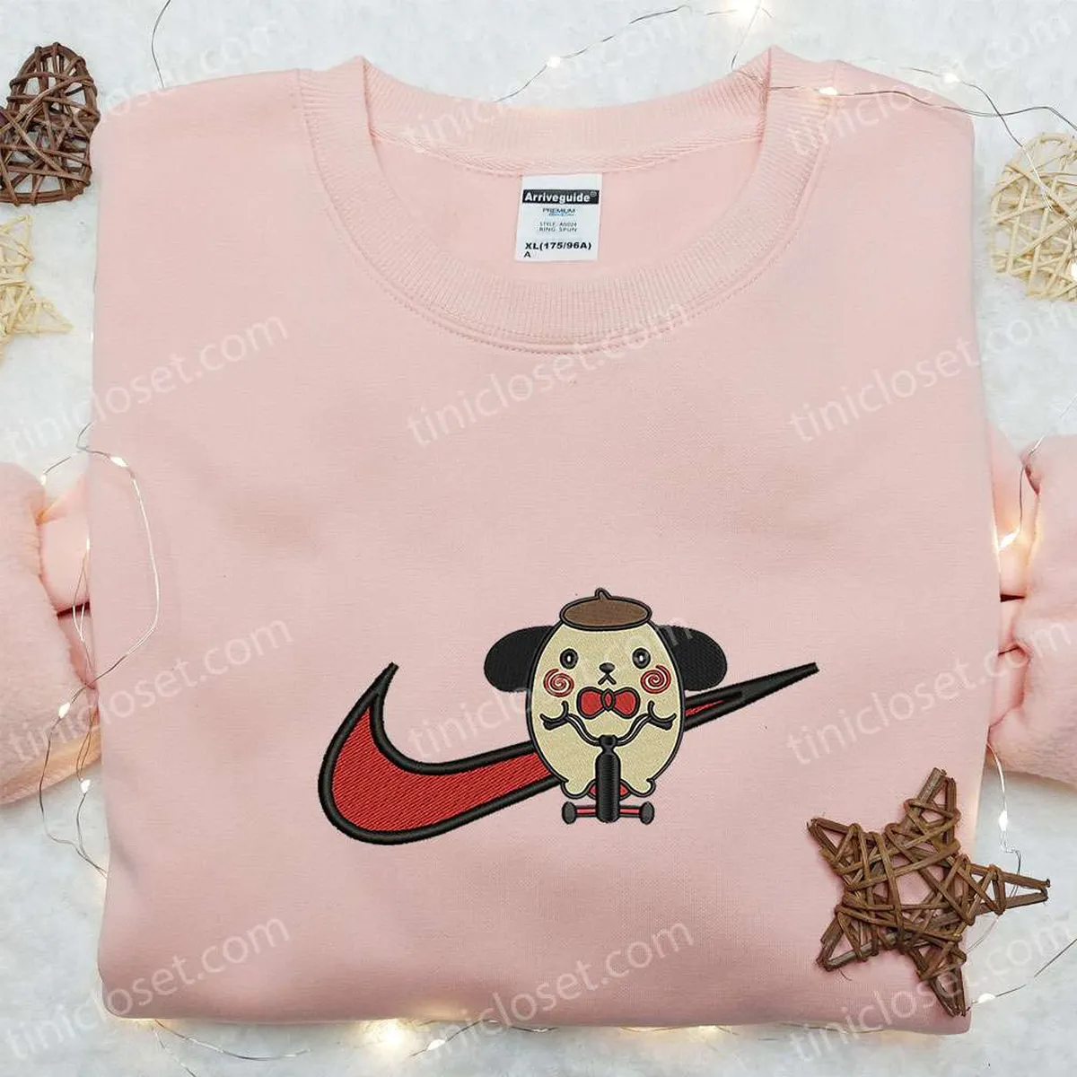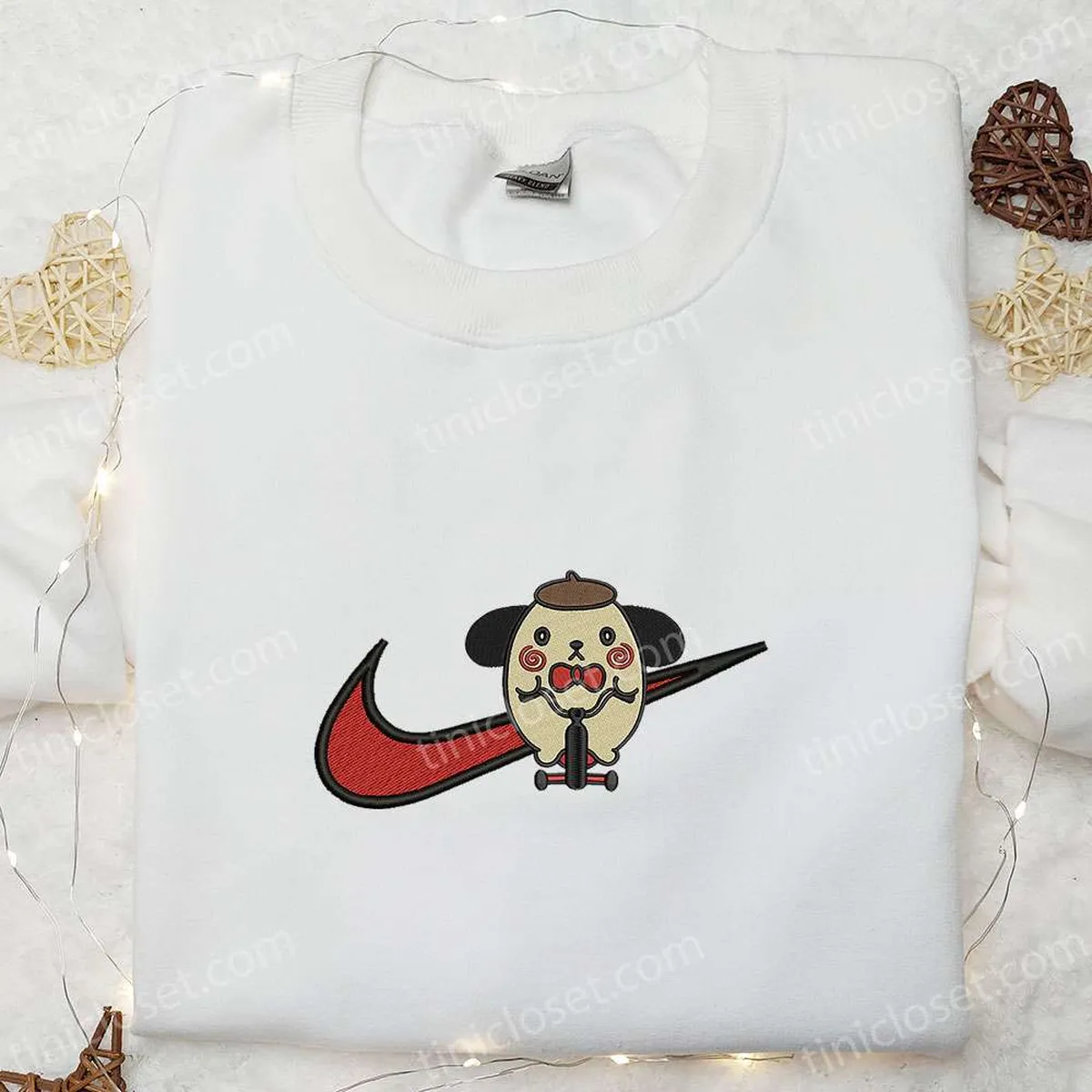 Swoosh x Pompompurin Jigsaw Embroidered Sweatshirt, Nike Inspired Embroidered Shirt, Funny Horror Halloween Embroidered T-shirt