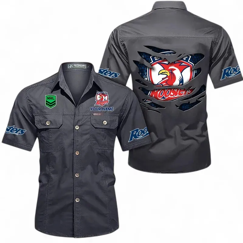 Sydney Roosters Fans Gift Short Sleeved Shirt, All Over Print Short Sleeved Shirt For Sport Fan, Custom Name NRL171071625560-Gray