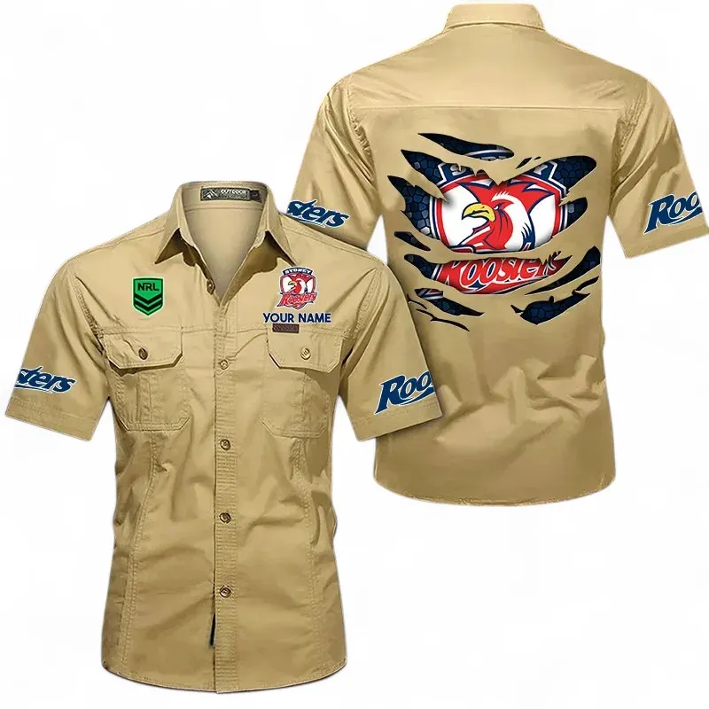 Sydney Roosters Fans Gift Short Sleeved Shirt, All Over Print Short Sleeved Shirt For Sport Fan, Custom Name NRL171071625560-Khaki