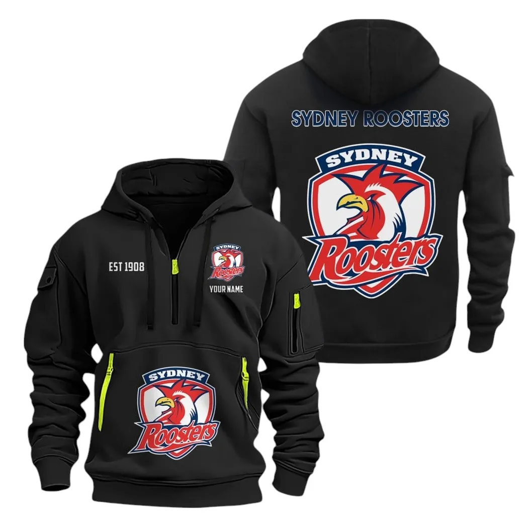 Sydney Roosters Hoodie Half Zipper, All Over Print Hoodie Half Zipper Sydney Roosters DNRL1356302035 – Black