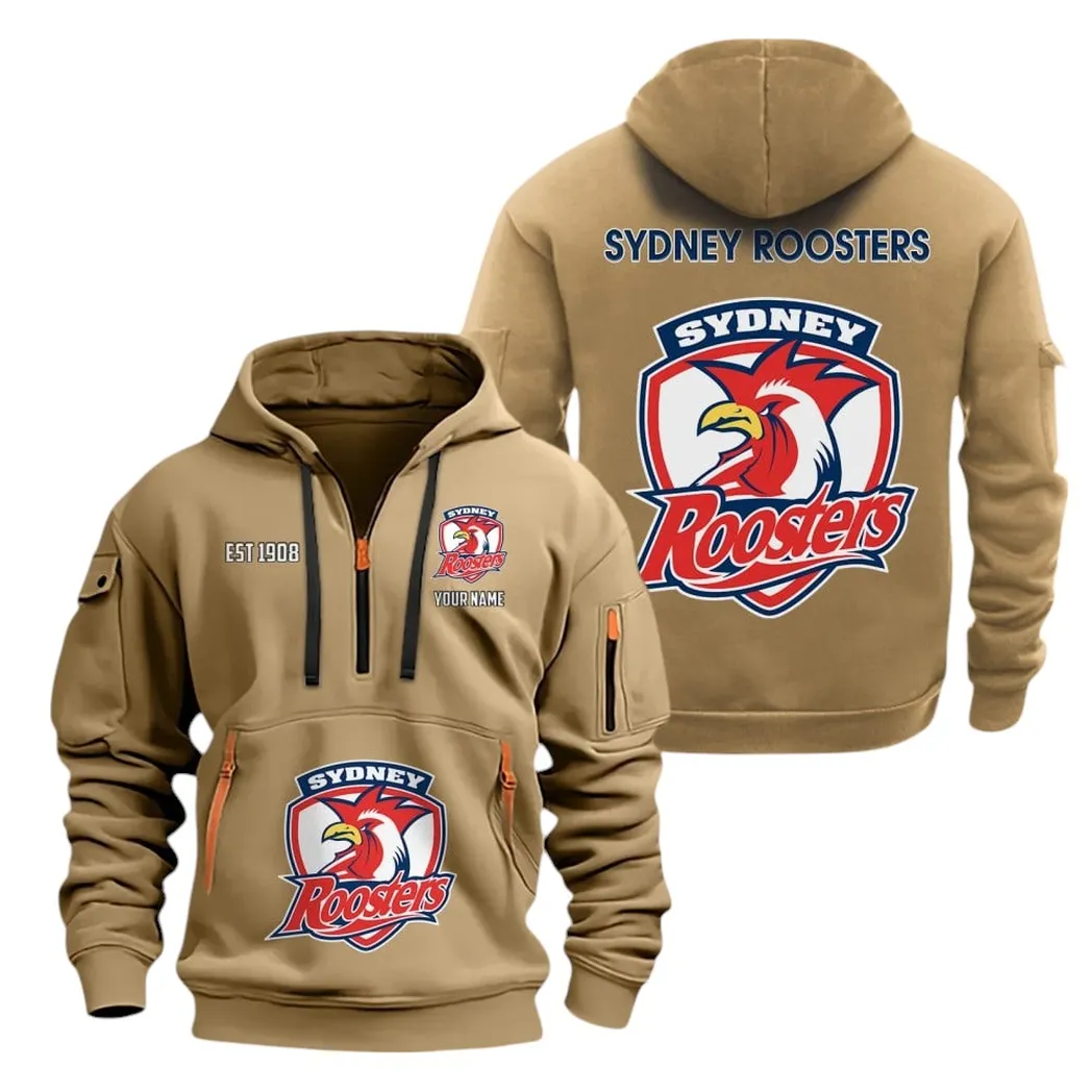 Sydney Roosters Hoodie Half Zipper, All Over Print Hoodie Half Zipper Sydney Roosters DNRL1356302035 - Khaki