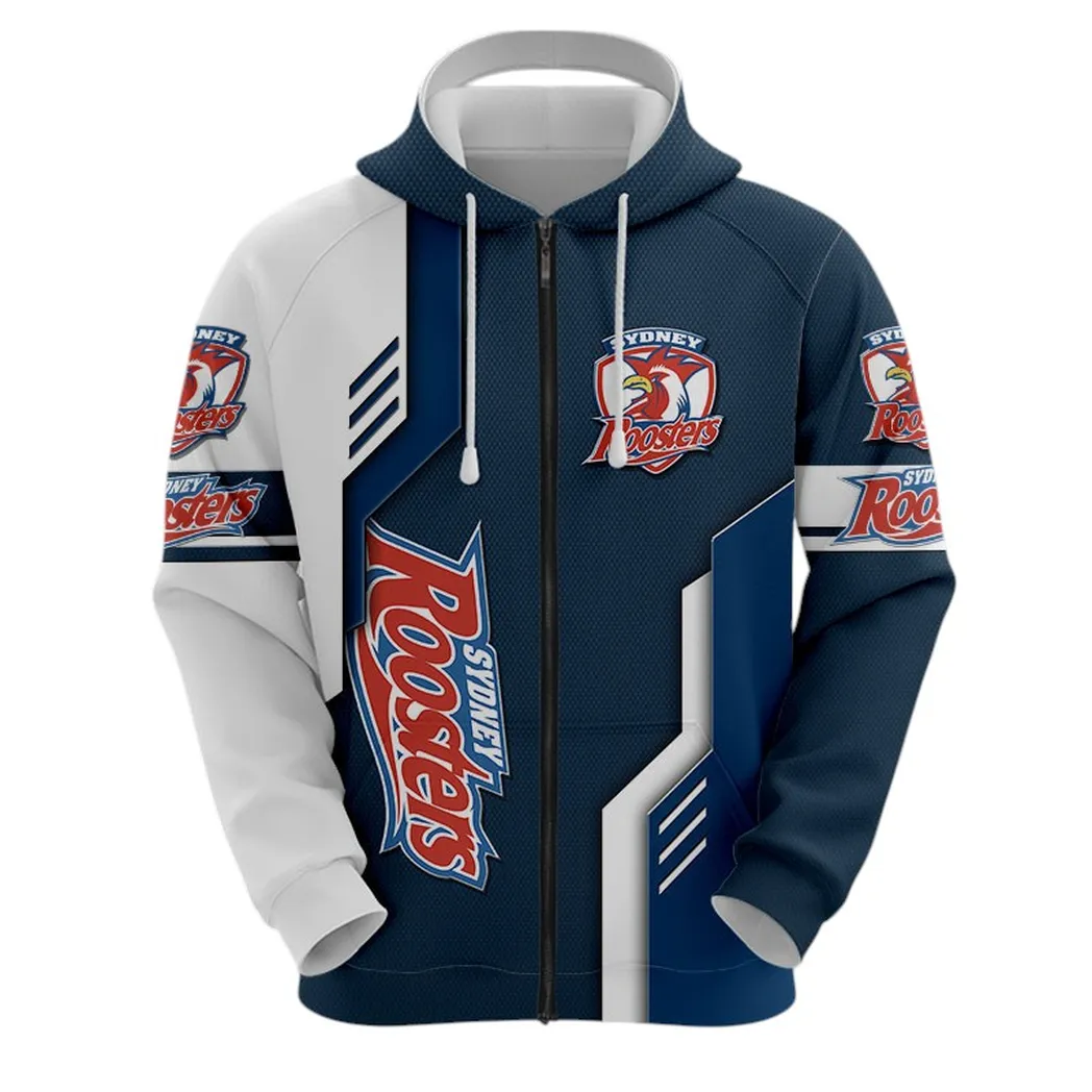 Sydney Roosters Zipper Hoodie, All Over Print Zipper Hoodie Sydney Roosters DNRL1256282040