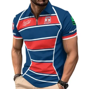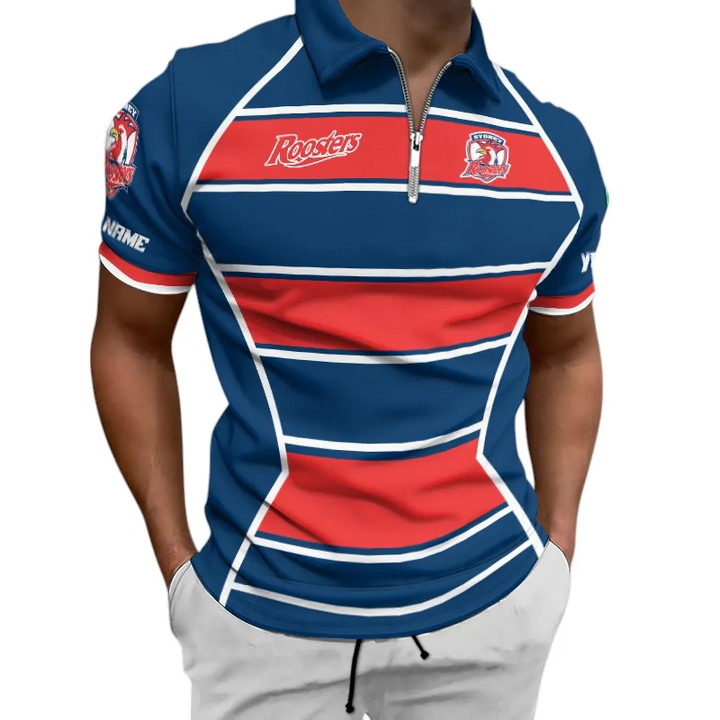 Sydney Roosters Zipper Polo Shirt, All Over Print Zipper Polo Shirt Sydney Roosters DNRL144722038
