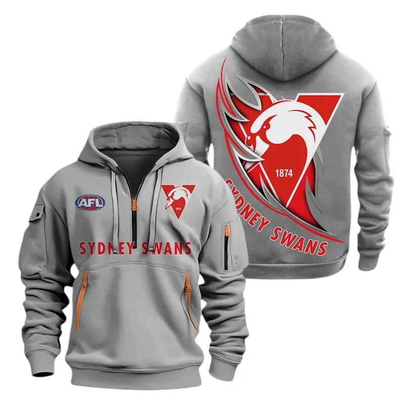 Sydney Swans Fans Gift Hoodie Half Zipper, All Over Print Hoodie Half Zipper For Sport Fan AFL142071225138 - Grey