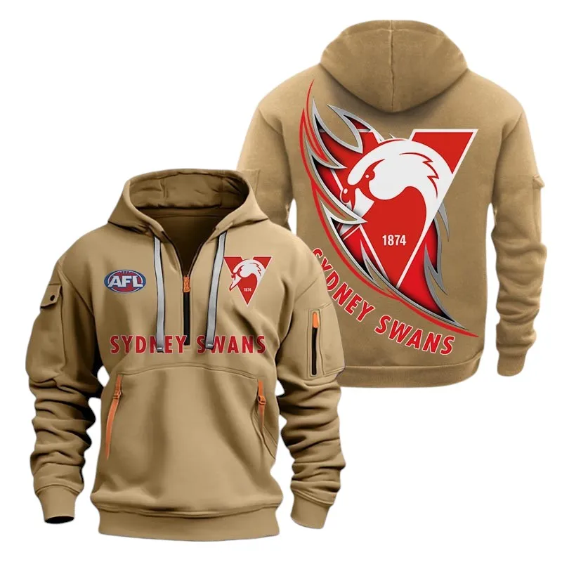 Sydney Swans Fans Gift Hoodie Half Zipper, All Over Print Hoodie Half Zipper For Sport Fan AFL142071225138 – Khaki