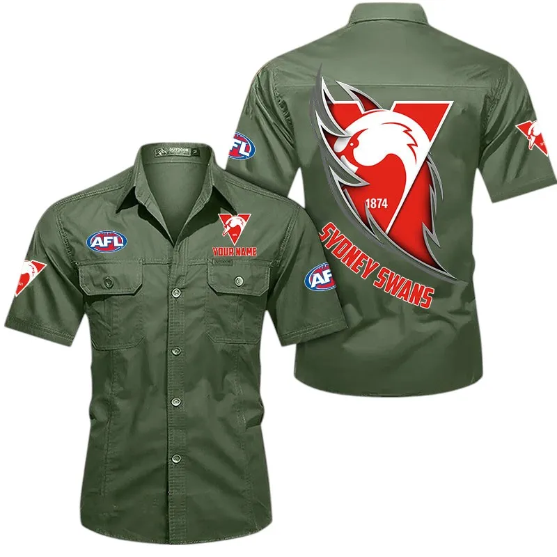 Sydney Swans Fans Gift Short Sleeved Shirt, All Over Print Shỉt For Sport Fan, Custom Name AFL155071425130 – Army Green