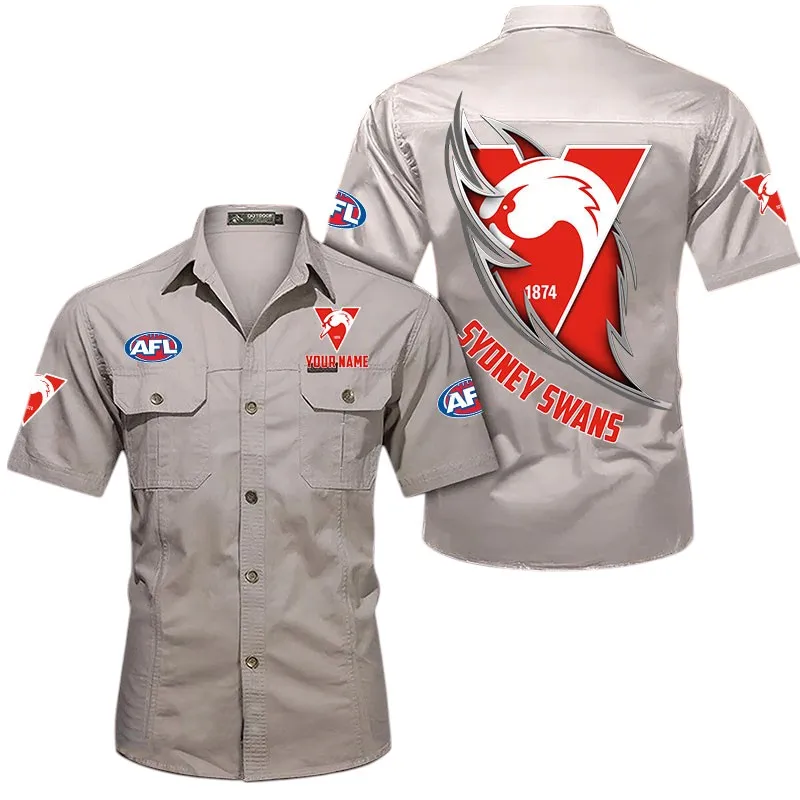 Sydney Swans Fans Gift Short Sleeved Shirt, All Over Print Shỉt For Sport Fan, Custom Name AFL155071425130 – Beige