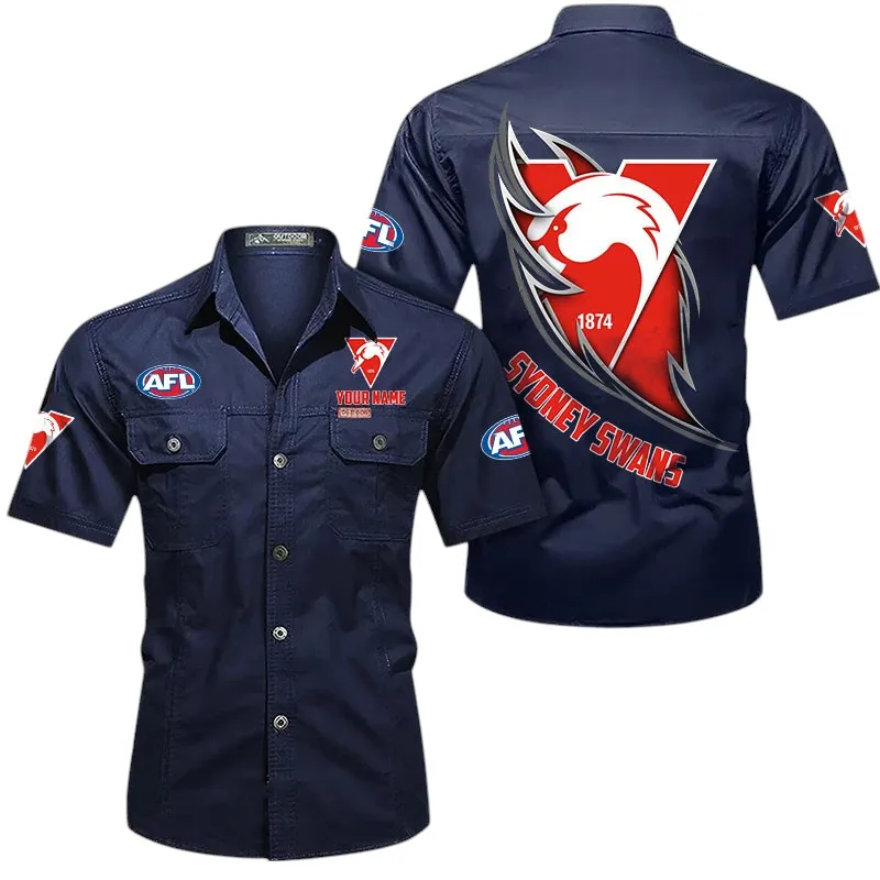 Sydney Swans Fans Gift Short Sleeved Shirt, All Over Print Shỉt For Sport Fan, Custom Name AFL155071425130 – Dark Blue