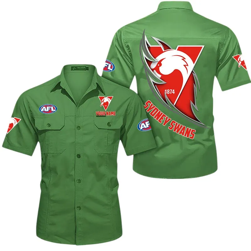 Sydney Swans Fans Gift Short Sleeved Shirt, All Over Print Shỉt For Sport Fan, Custom Name AFL155071425130 - Army Green