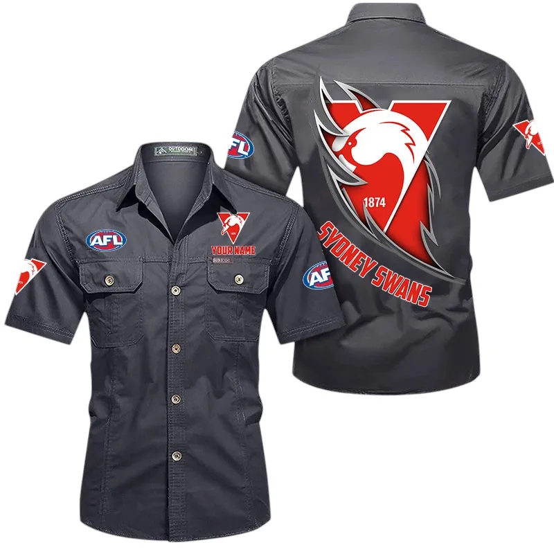 Sydney Swans Fans Gift Short Sleeved Shirt, All Over Print Shỉt For Sport Fan, Custom Name AFL155071425130 – Gray
