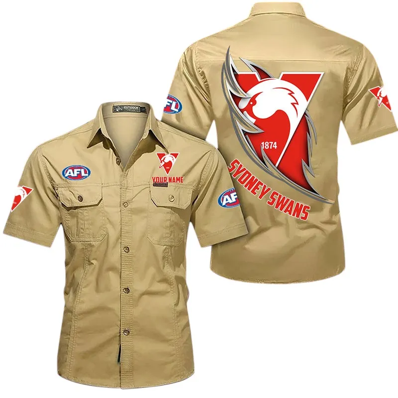 Sydney Swans Fans Gift Short Sleeved Shirt, All Over Print Shỉt For Sport Fan, Custom Name AFL155071425130 – Khaki