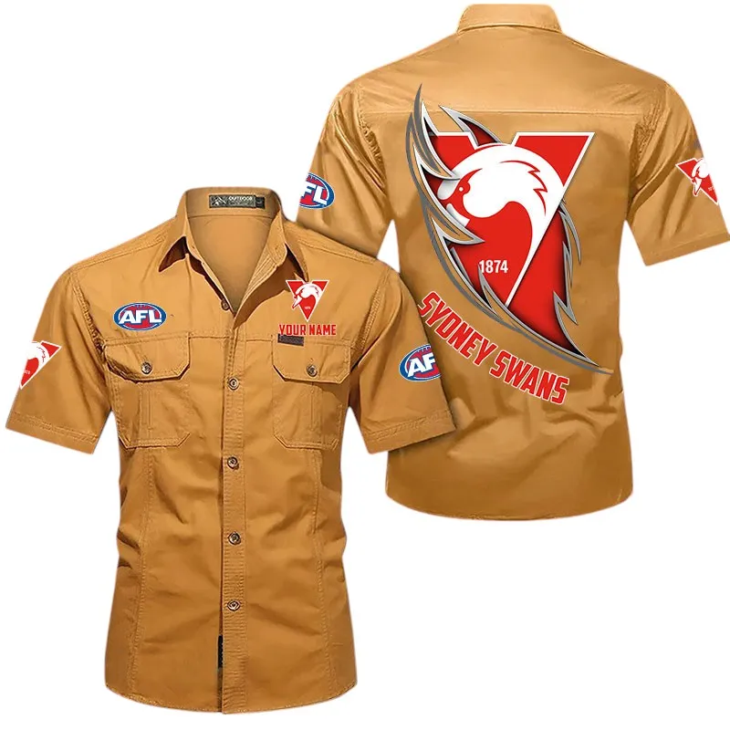 Sydney Swans Fans Gift Short Sleeved Shirt, All Over Print Shỉt For Sport Fan, Custom Name AFL155071425130 - Khaki