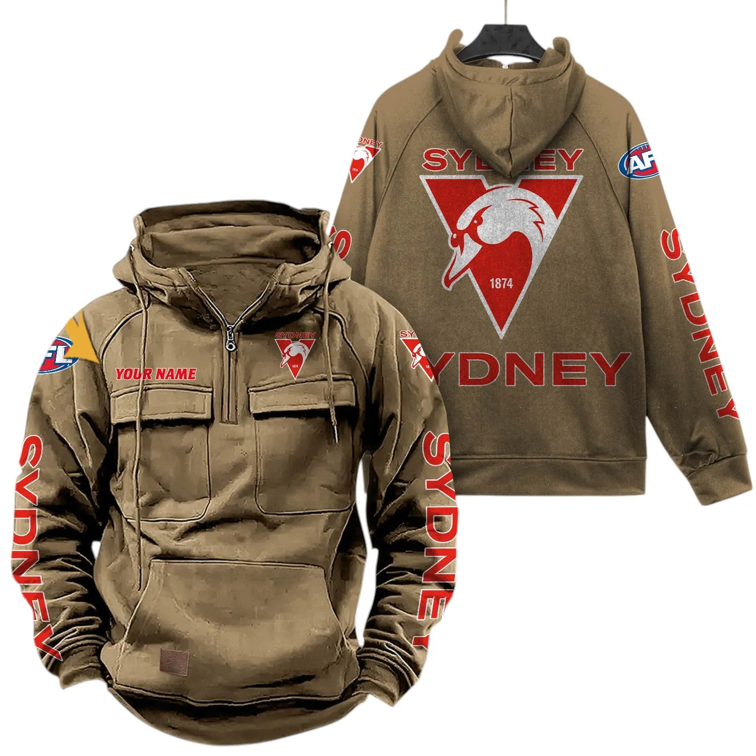 Sydney Swans Fans Gift Tactical Quarter Zip Hoodie, All Over Print Hoodie For Sport Fan, Custom Name AFL150071825139 – Khaki