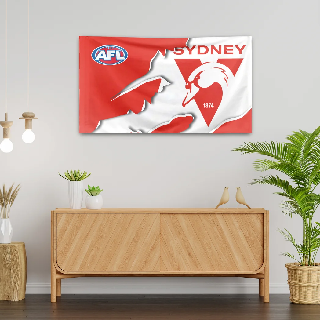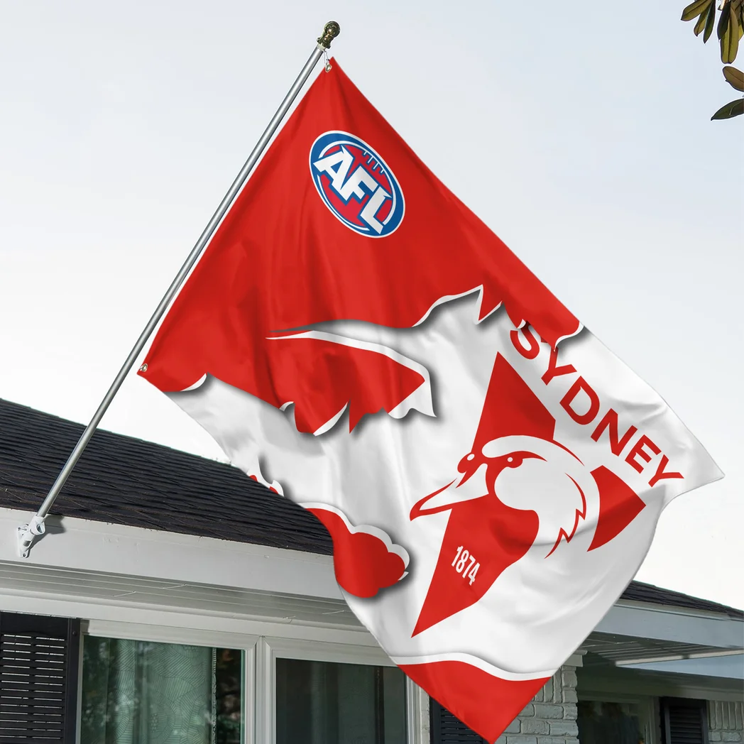 Get your Custom Sydney Swans Flag today and bring your fandom to life, wherever you hang it.