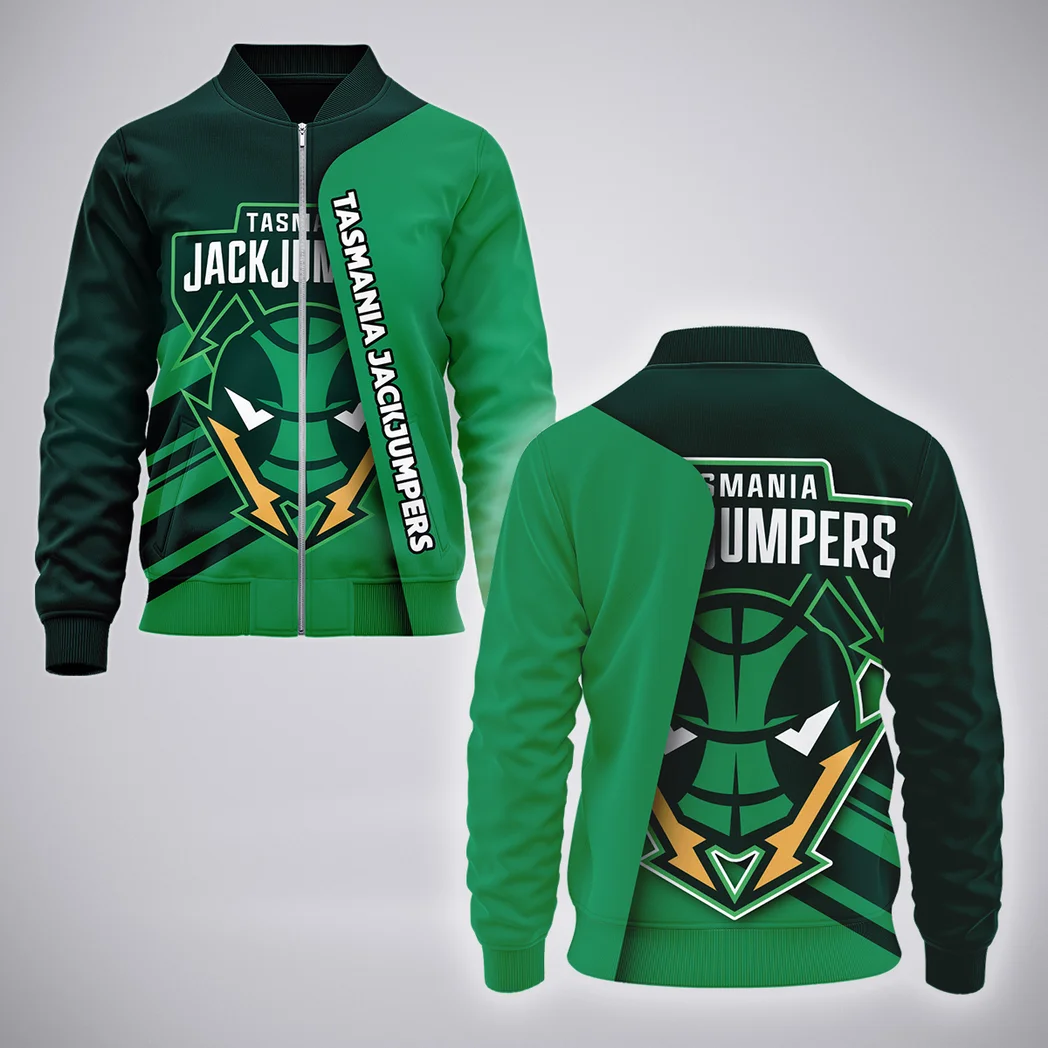 Rep your loyalty in style with this custom Tasmania JackJumpers bomber jacket, built for fans who want to stay warm, look sharp, and show their pride all season long. With a classic silhouette and a fresh custom print, it’s the ultimate blend of team spirit and street-ready fashion.