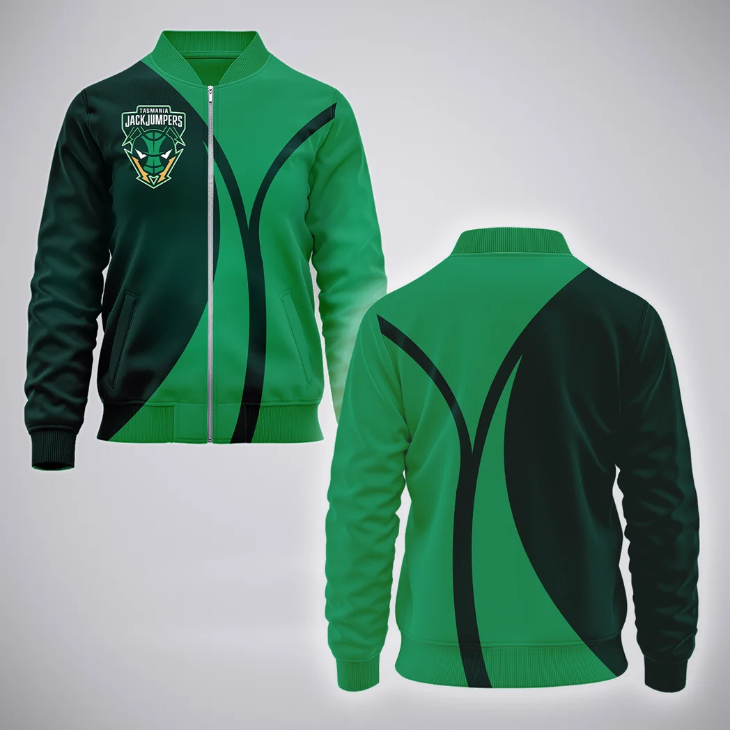Rep your loyalty in style with this custom Tasmania JackJumpers bomber jacket, built for fans who want to stay warm, look sharp, and show their pride all season long. With a classic silhouette and a fresh custom print, it’s the ultimate blend of team spirit and street-ready fashion.