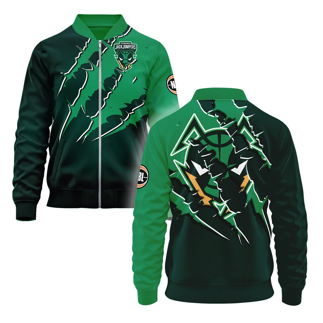 Rep your loyalty in style with this custom Tasmania JackJumpers bomber jacket, built for fans who want to stay warm, look sharp, and show their pride all season long. With a classic silhouette and a fresh custom print, it’s the ultimate blend of team spirit and street-ready fashion.