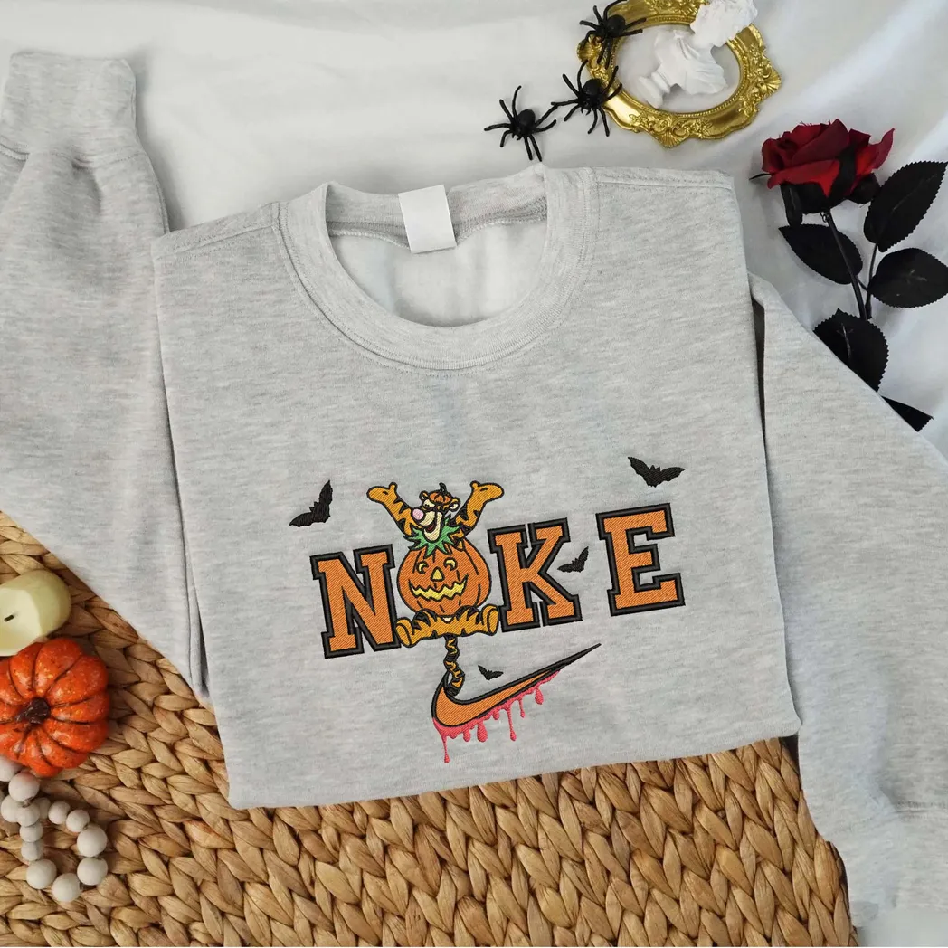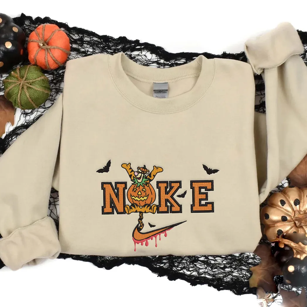 Tigger Winnie The Pooh Cartoon Halloween Nike Embroidered Sweatshirt Fashion Style