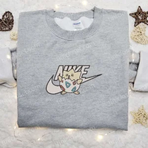 Togepi x Nike Anime Embroidered Hoodie, Pokemon Embroidered Shirt, Nike Inspired Embroidered Shirt