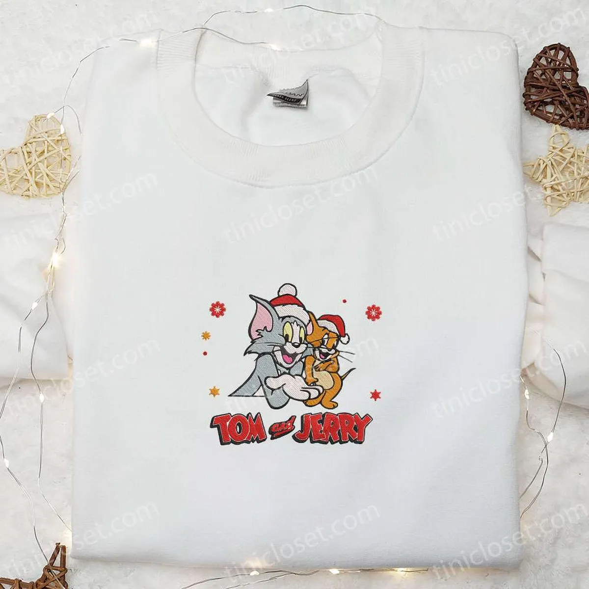 Tom And Jerry Christmas Embroidered Sweatshirt, Merry Christmas Embroidered Shirt, Best Christmas Day Gift Ideas