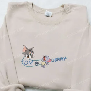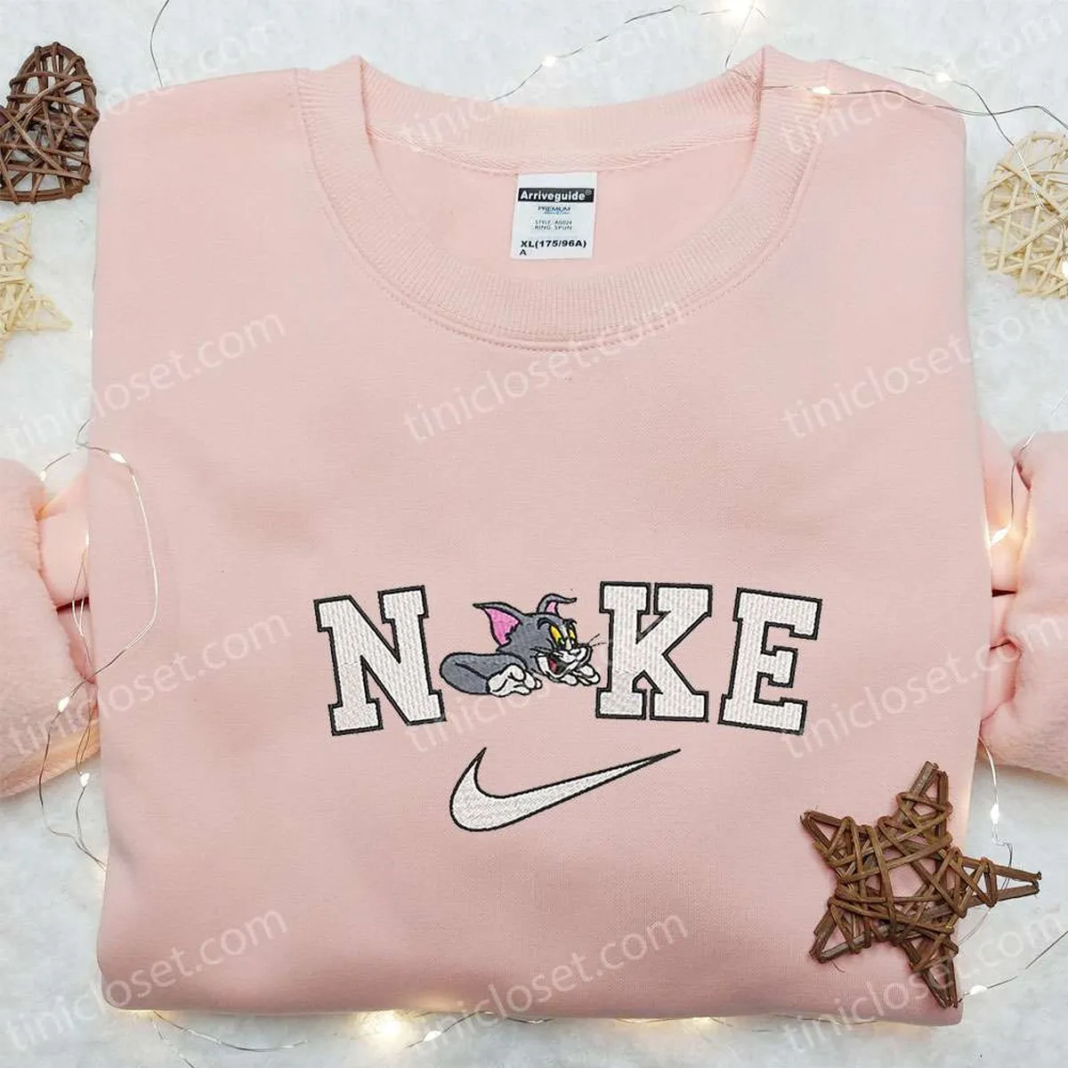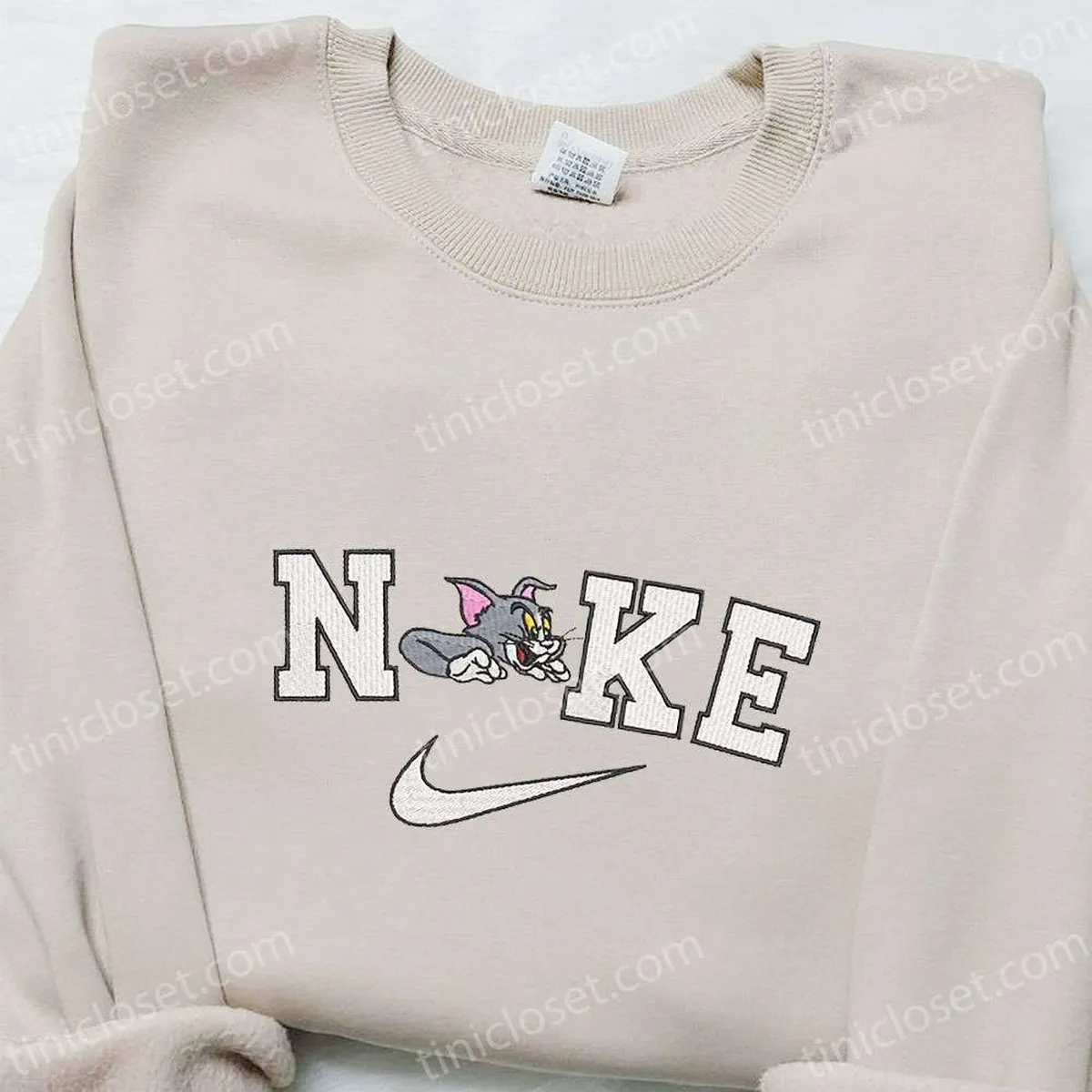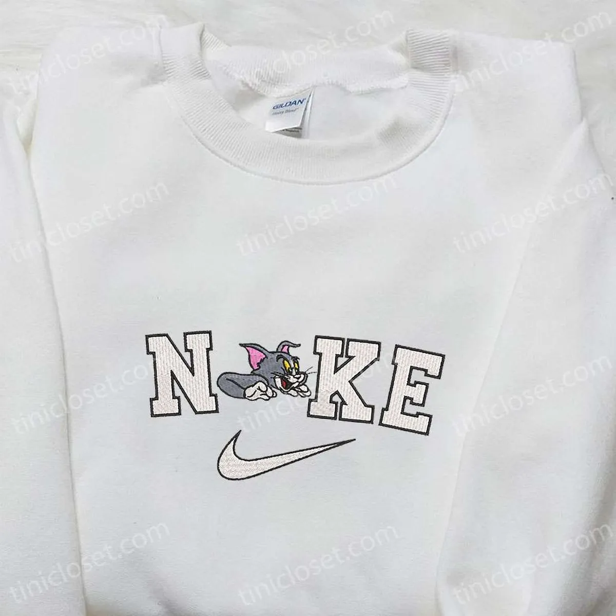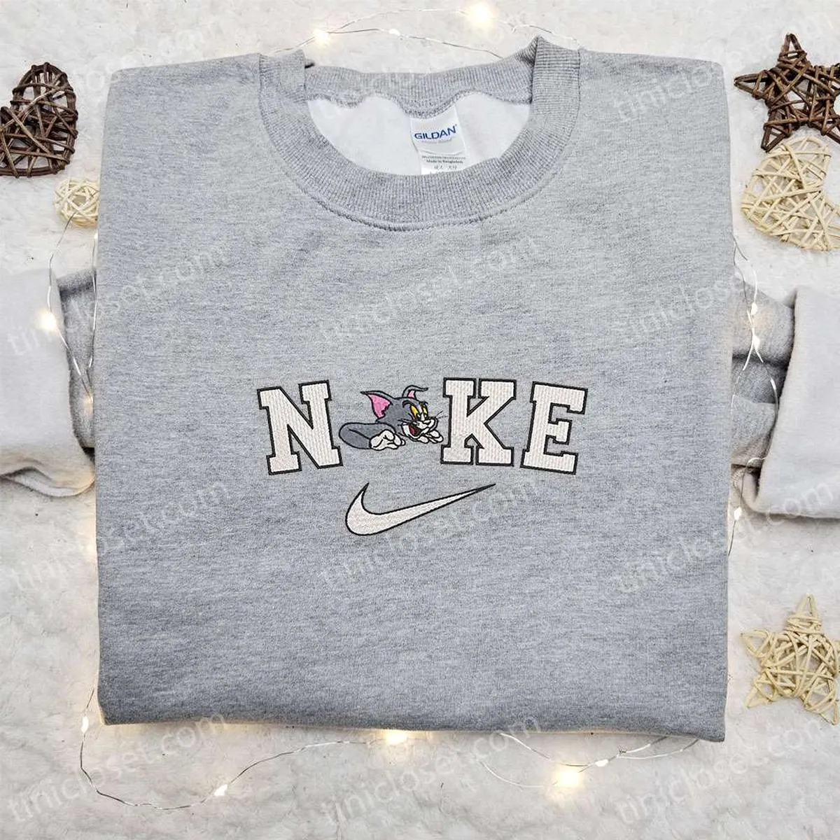 Tom Cat x Nike Cartoon Embroidered Sweatshirt, Tom and Jerry Embroidered Hoodie, Best Gift for Family