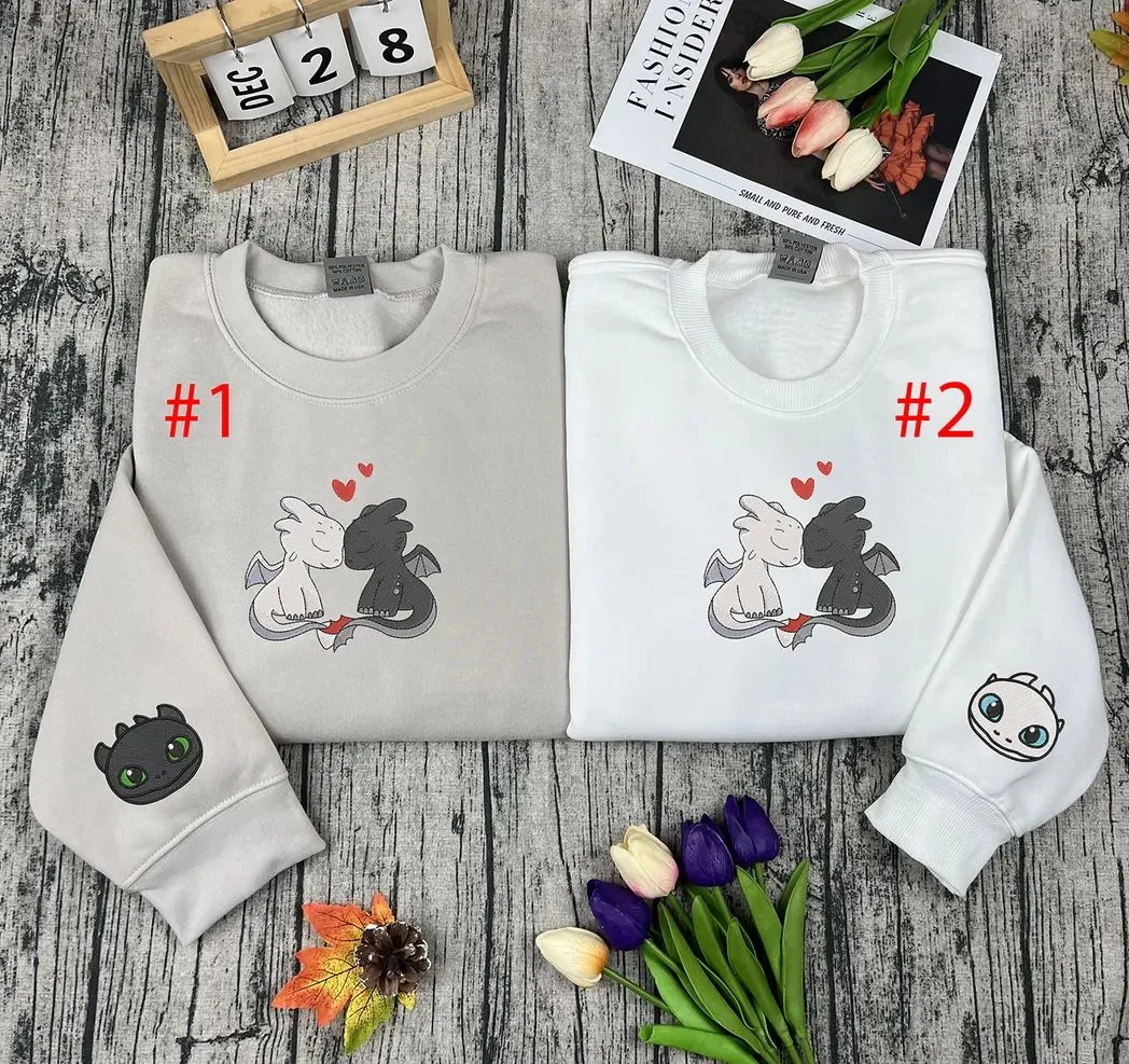 Toothless And Light Fury Embroidered Sweatshirt Fashion Style For Couples, Valentines Gift For Him/Her