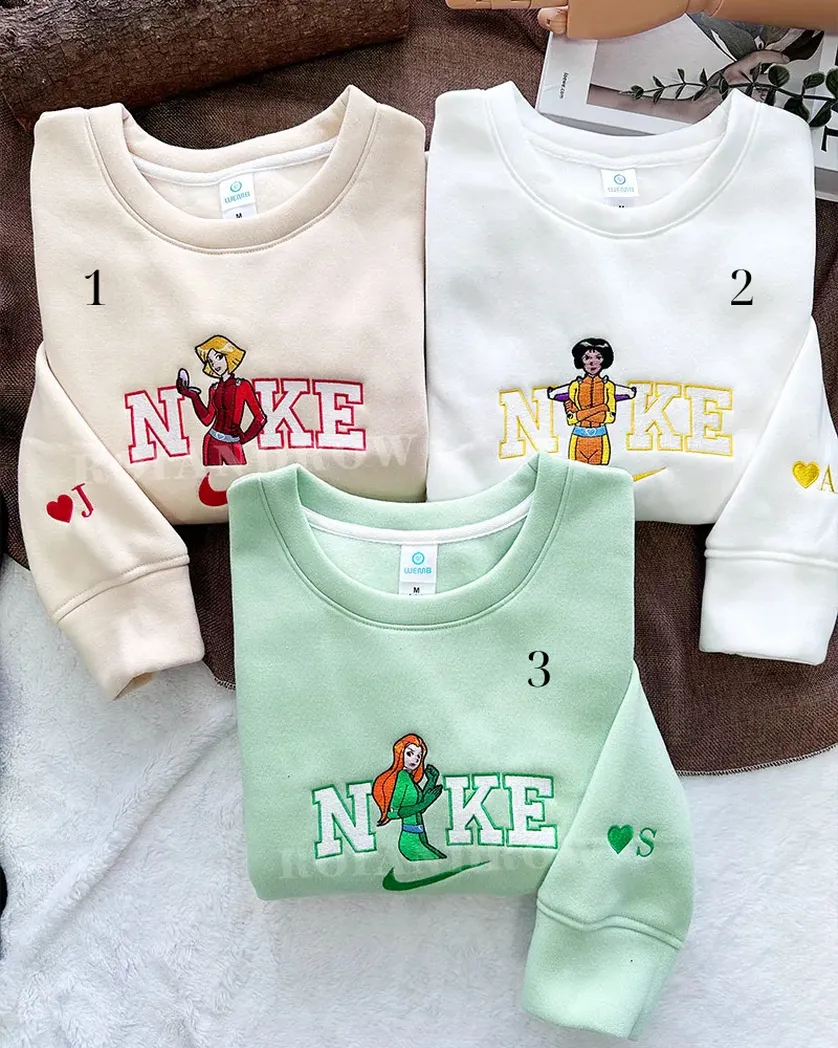 Totally Spies! Cartoon Nike Embroidered Sweatshirt Fashion Style For Group
